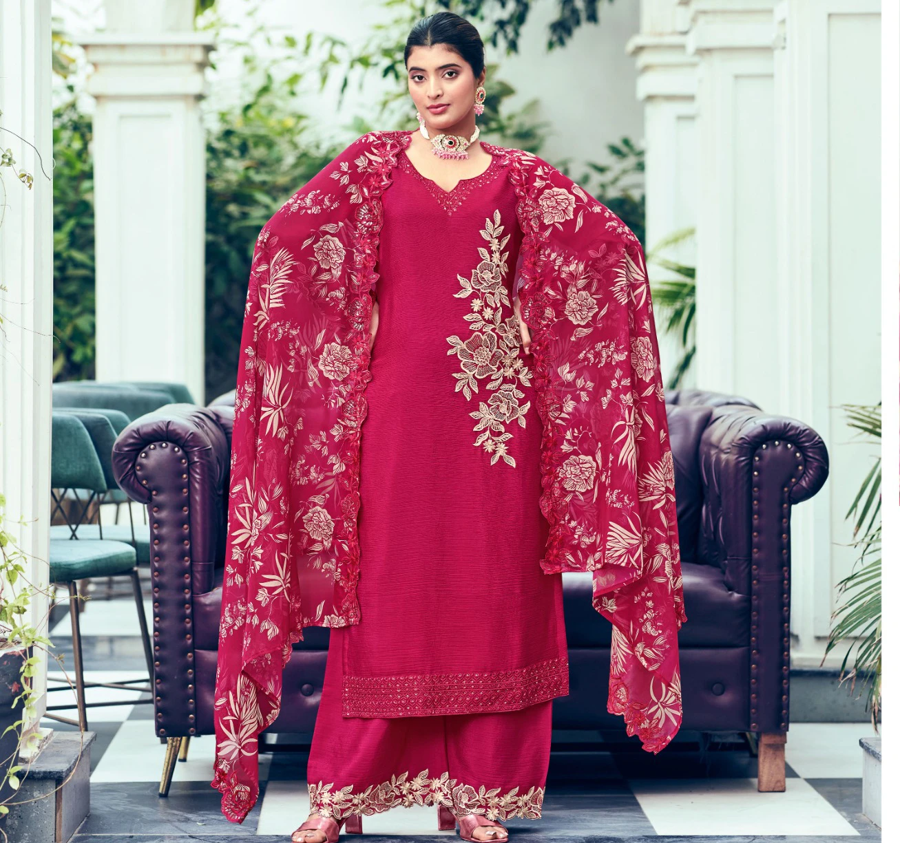 Step into sophistication with our exclusive collection featuring Heavy Premium Chinon Tops and Bottoms, paired with a stunning Heavy Premium Organza Dupatta – a perfect blend of opulence and style! 💖