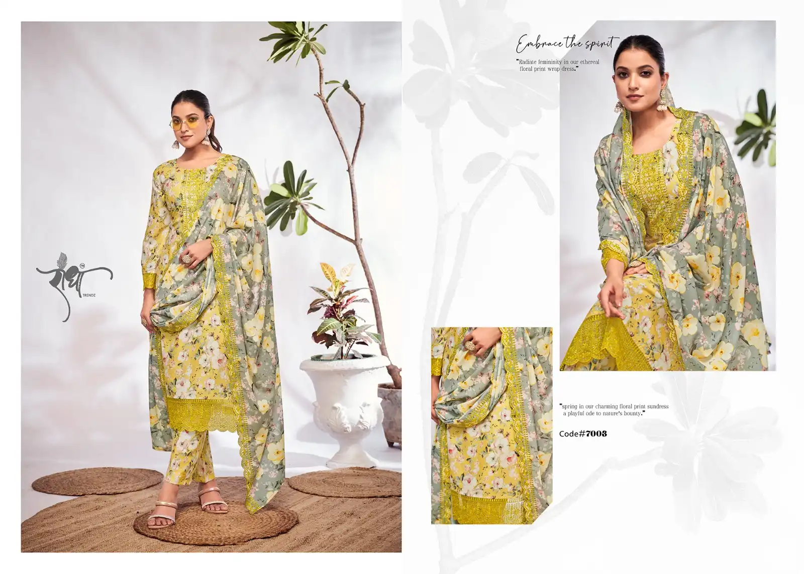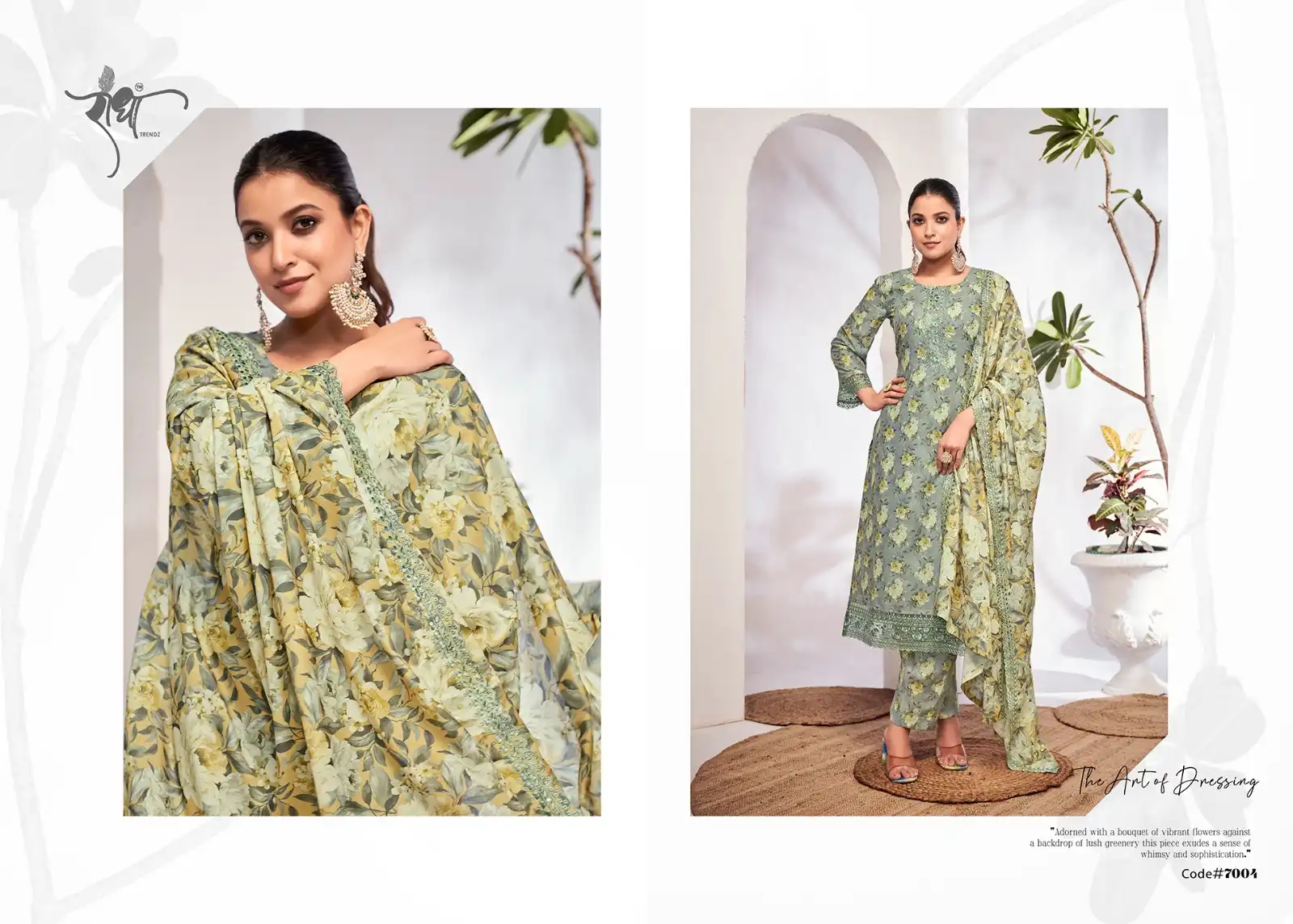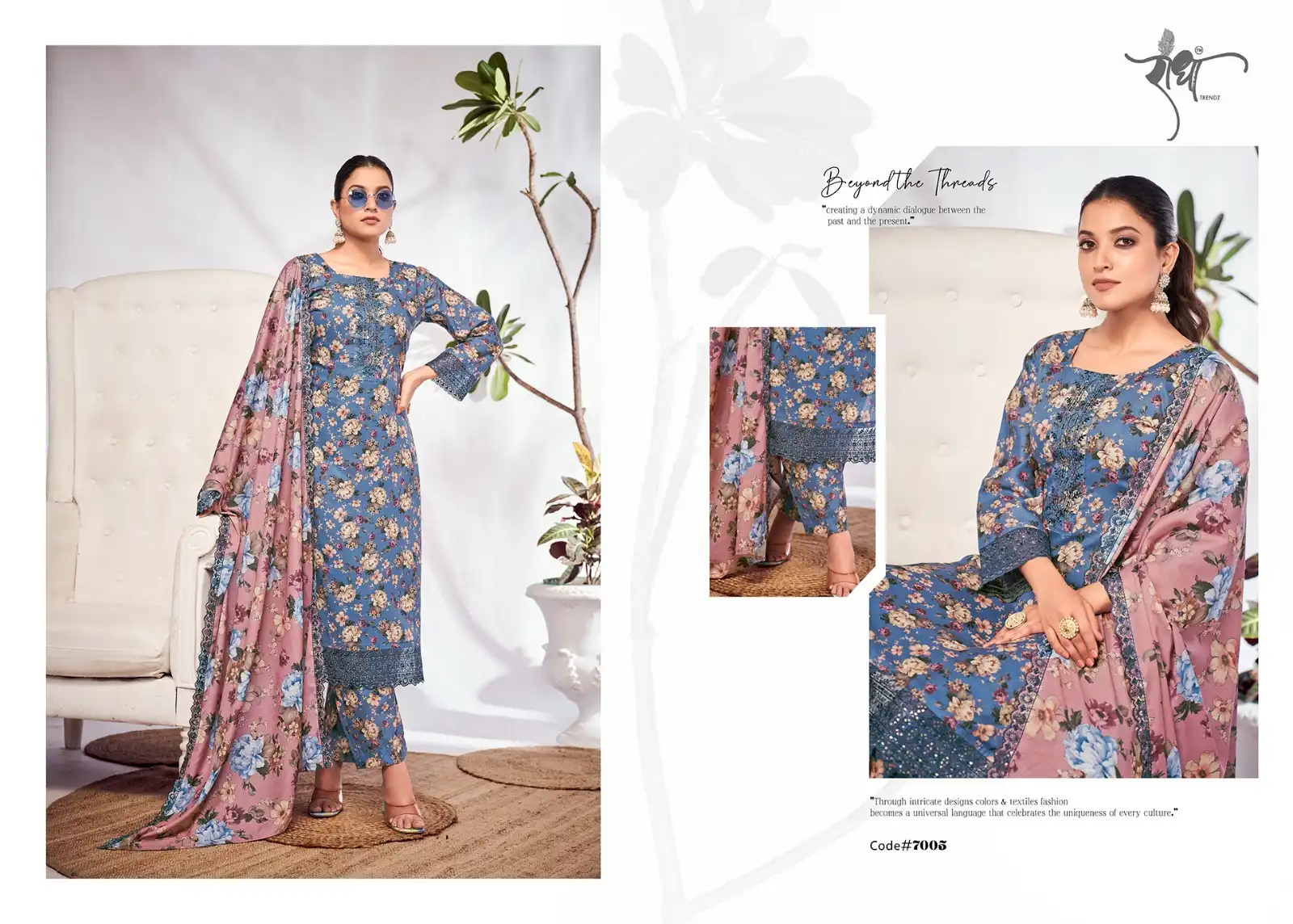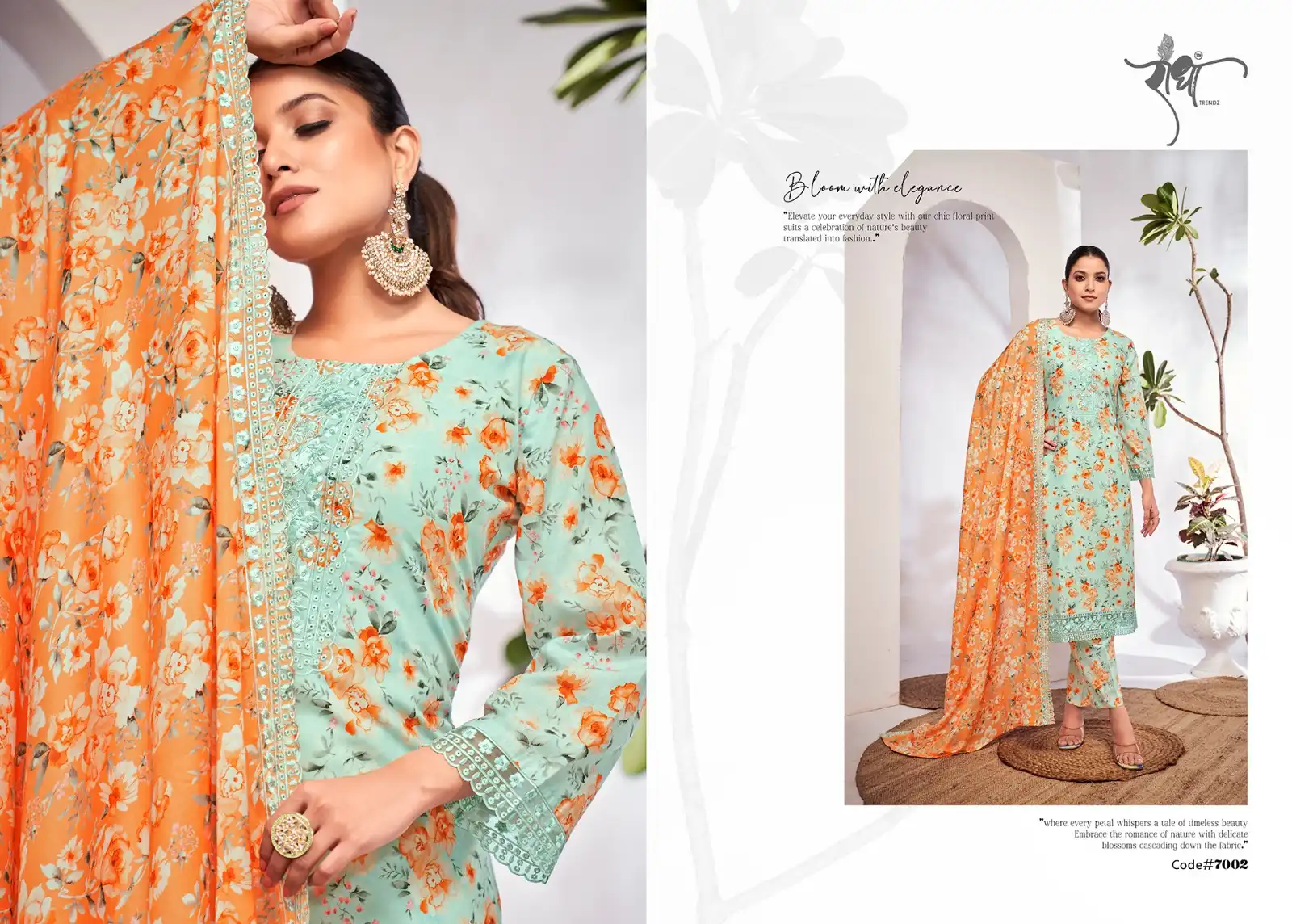 This pure cotton set collection offers a blend of comfort and style at ₹1495 per piece. Each set includes a top with digital print and embroidery work, a matching bottom with digital print, and a dupatta with digital print and self-embroidery work. Sold as complete sets, they provide excellent value and are perfect for various occasions.