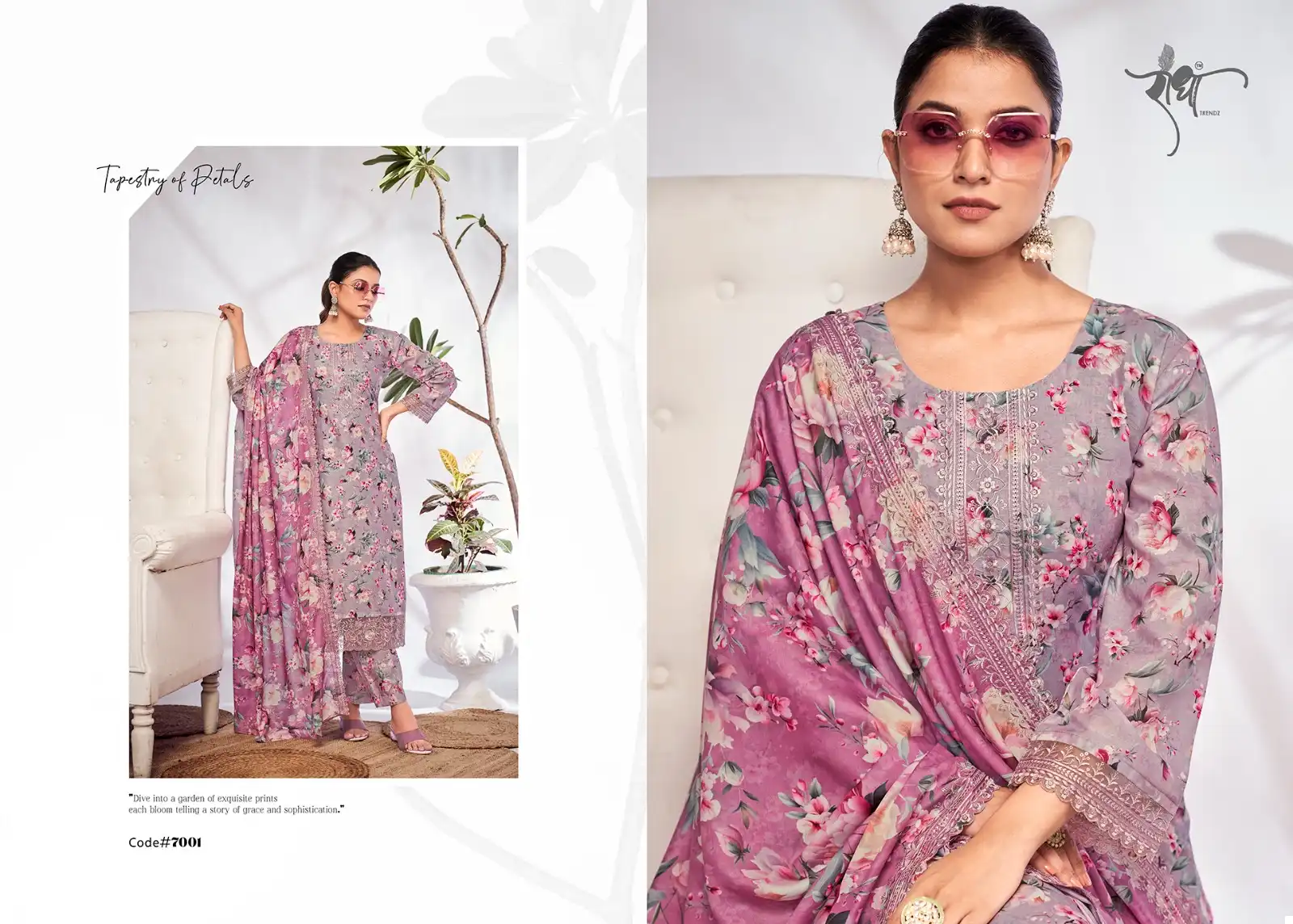 Top Description: Crafted from pure cotton, the tops feature intricate digital prints enhanced with delicate embroidery work, adding a touch of elegance and sophistication.