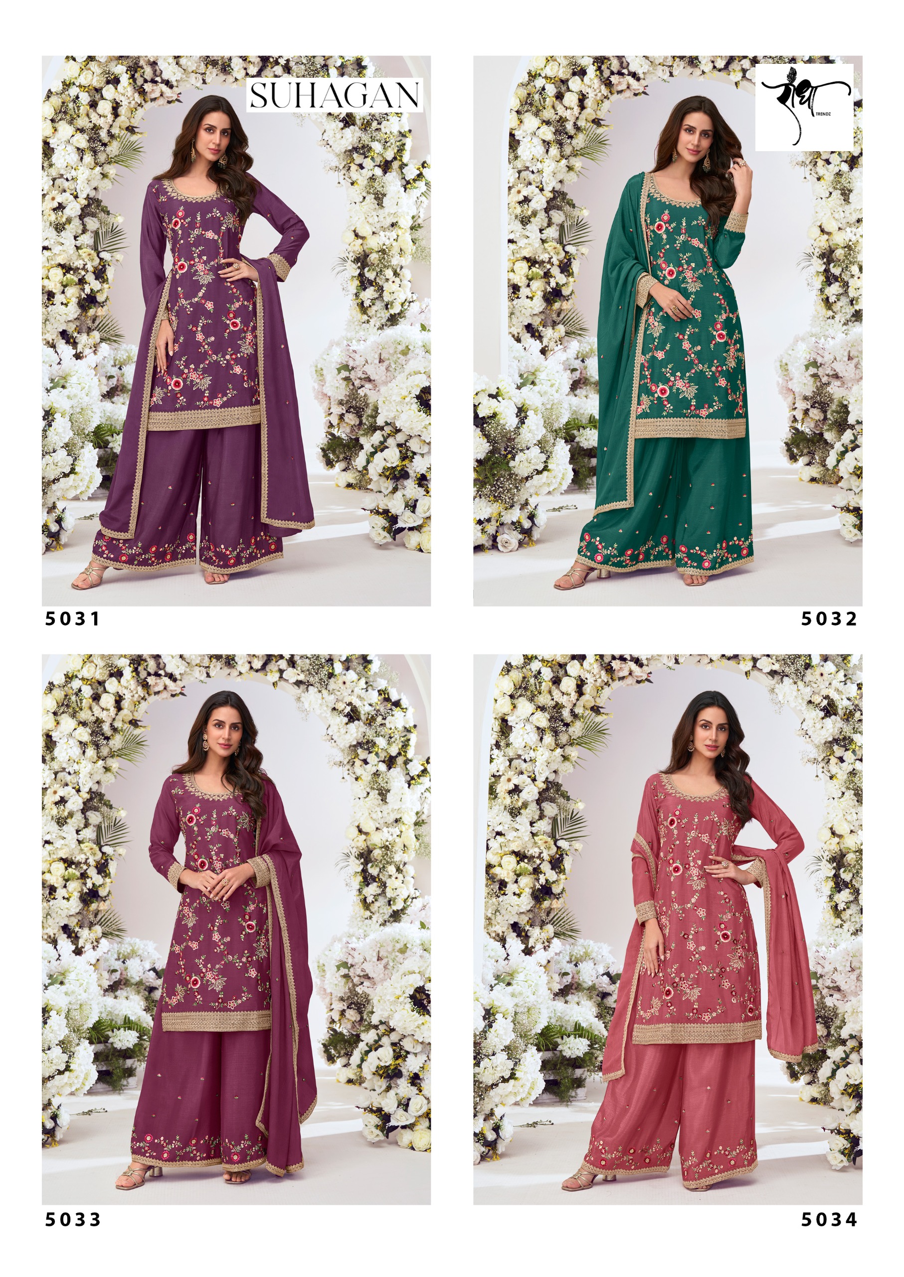 Radha Trendz Suhagan Wholesale Premium Chinon Embroidered Sharara Suit.