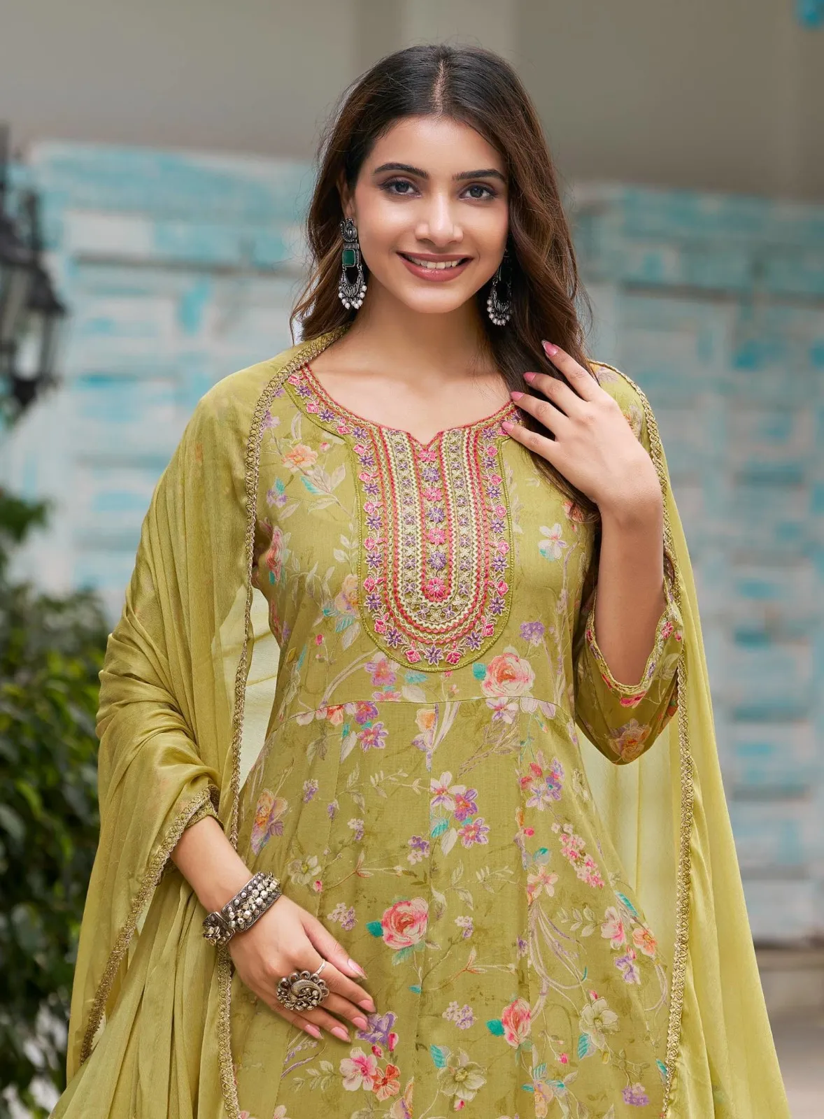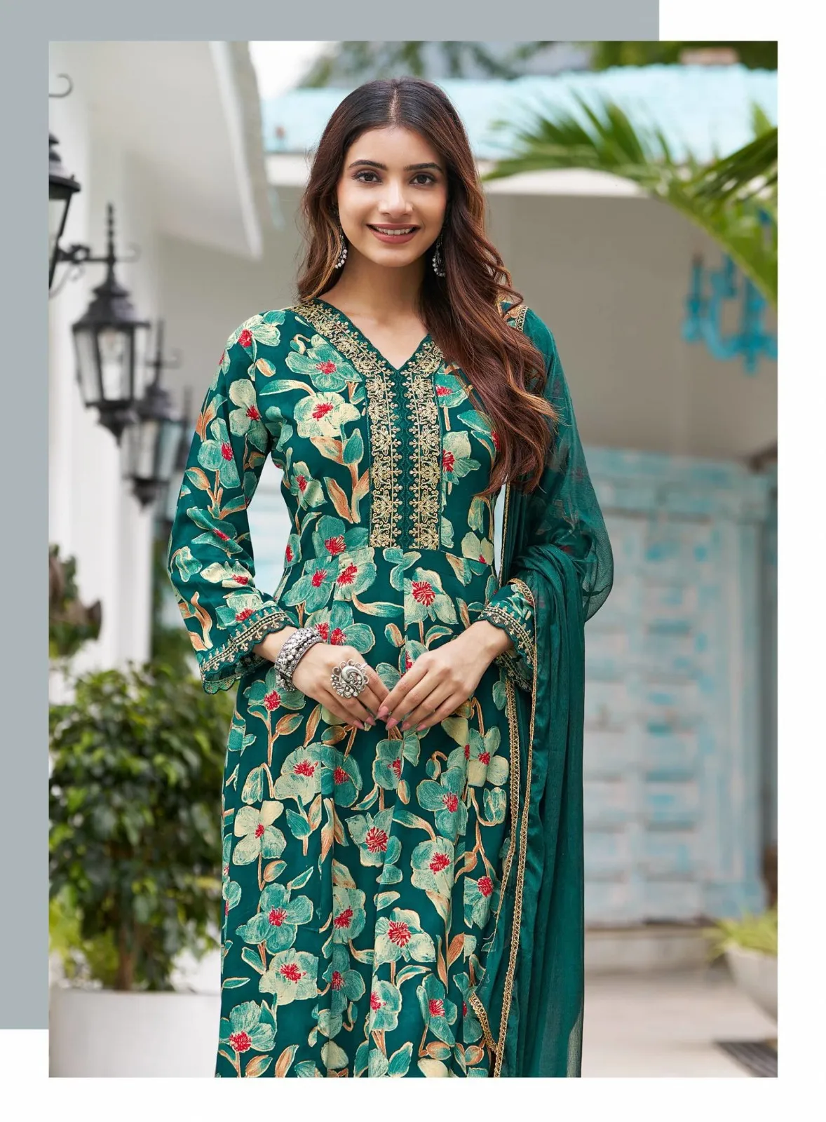 Product Name: Radhika Anarkali Vol 7 Rayon Foil Print Kurti Pant And Dupatta Set