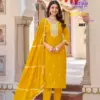 Buy Radhika Cotton Culture Vol 3 Kurti Pant with Dupatta Collection online at wholesale rate. This elegant and breathable cotton suit set features intricate embroidery work and soft mul inner lining, perfect for everyday elegance and festive comfort.