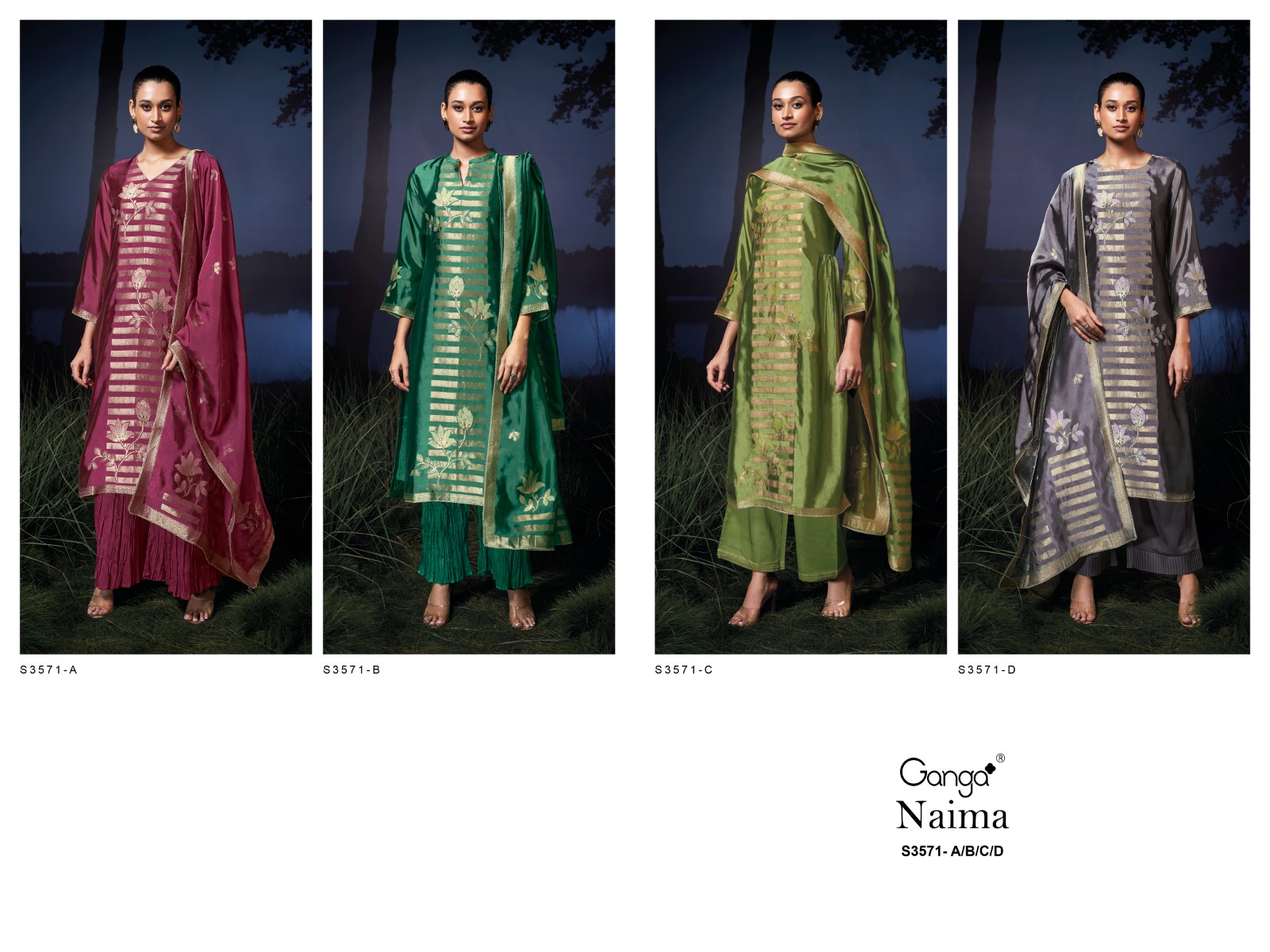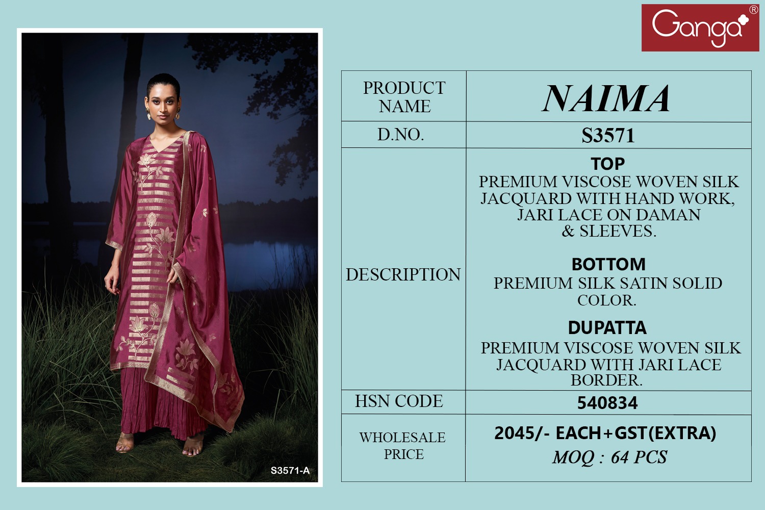 Ganga Naima 3571 Wholesale Viscose Silk Salwar Kameez Catalog.