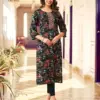 Top: Each top in the collection is made from Liva approved Rayon, a fabric known for its smooth texture, fluidity, and environmental friendliness. The Rayon Print brings a vibrant and chic appeal to the tops, making them perfect for various casual and semi-formal occasions. Enhanced with delicate work, these tops add a touch of sophistication, ensuring that they are not just comfortable but also stylish.