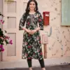 This information describes a set of clothing, likely a collection of tops made from Liva Approved Rayon Print with work: