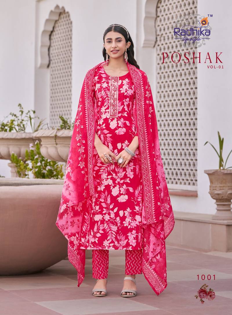 Radhika Lifestyle Radhika Poshak Vol 1 Cotton Embroidered Kurti Set Wholesale Collection