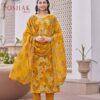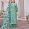 Buy Radhika Lifestyle Radhika Poshak Vol 1 kurti pant dupatta set online at the best wholesale price. This elegant 3-piece ethnic wear set features top and bottom crafted from cotton with intricate embroidery work, paired with a soft mul cotton dupatta. Perfect for comfortable daily wear with a traditional touch.