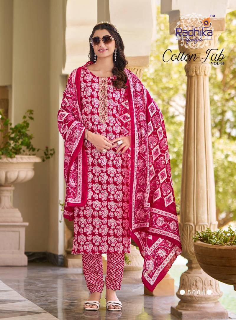 Radhika Lifestyle Vol 5 Wholesale Cotton Kurti With Bottom Dupatta embroidered cotton kurtis online at the best wholesale price.