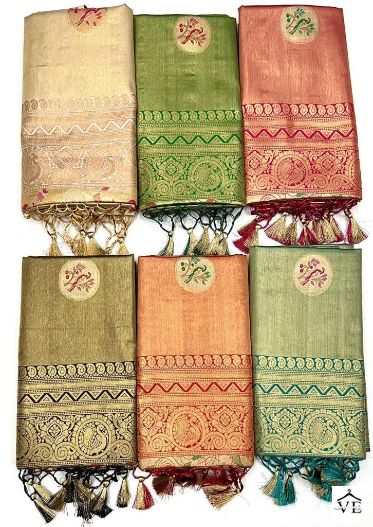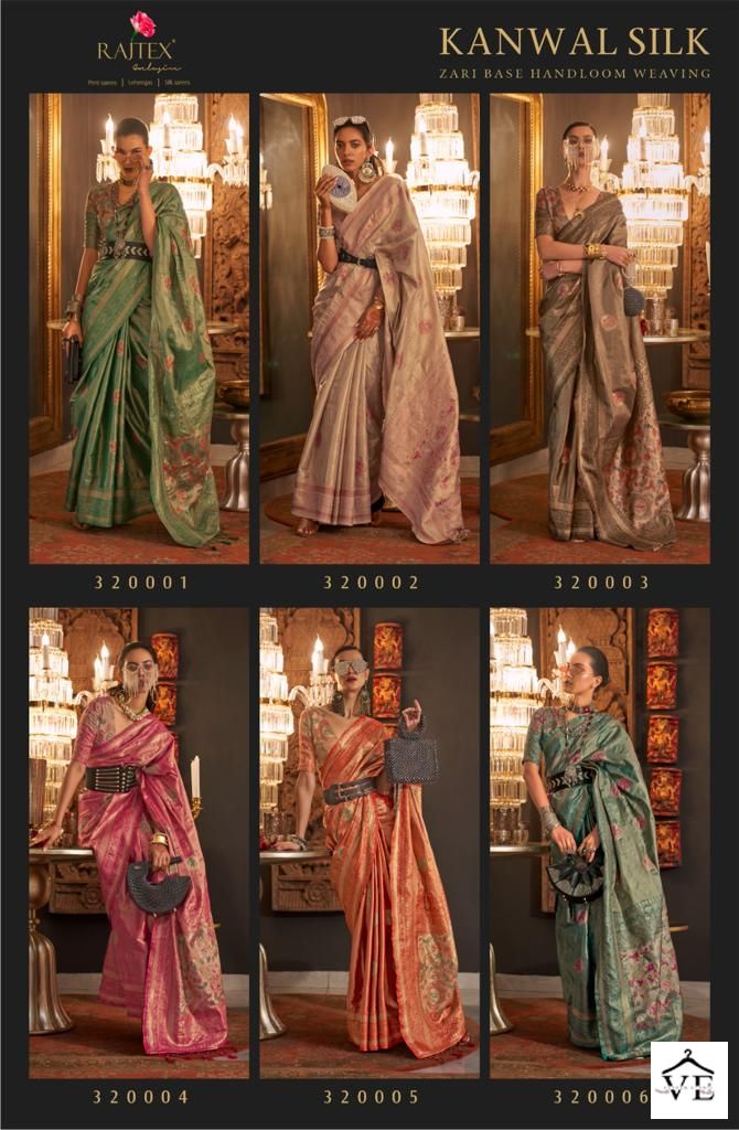 Raj Tex Kanwal Silk Zari Base Wholesale Saree Catalog 6 Pcs. We deal in Kurtis, Sarees, Dresses Materials, Leggings, and Designer Salwar Kameez.