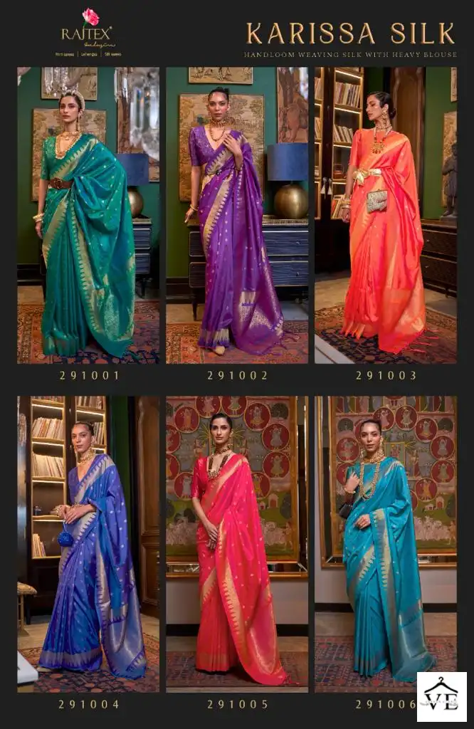 Raj Tex Kariisa Silk Handloom Weaving Silk Wholesale Sarees Catalog 6 Pcs. We deal in Kurtis, Sarees, Dresses Materials, Leggings, and Designer Salwar Kameez.[gap height=”15px”]