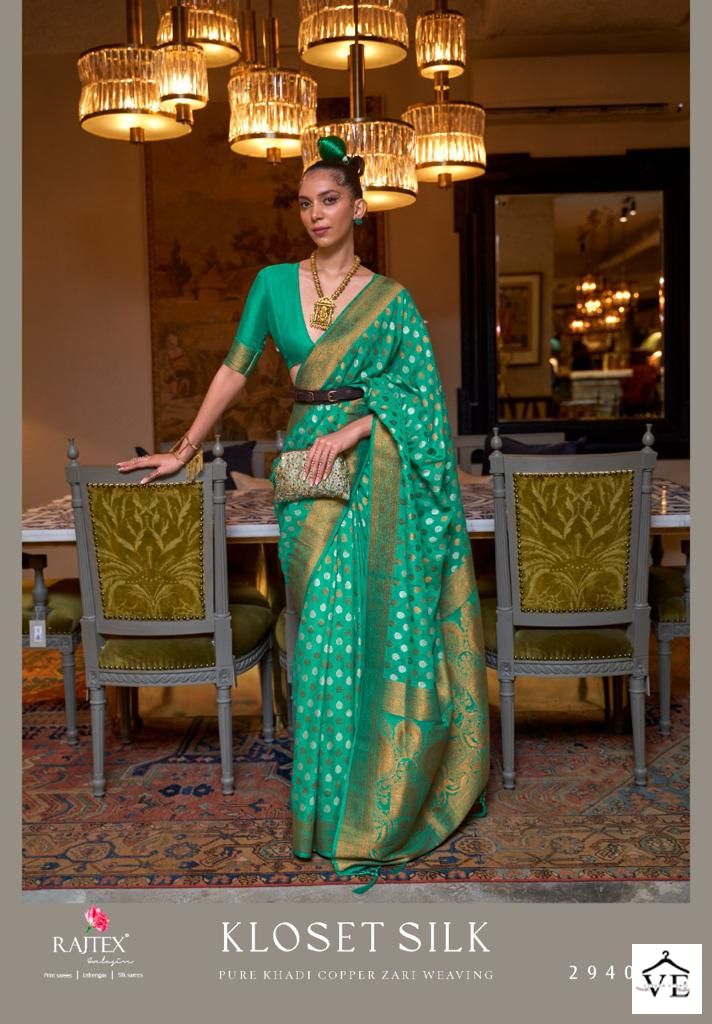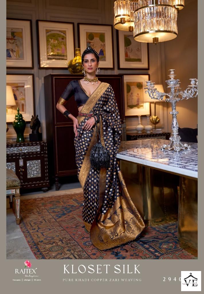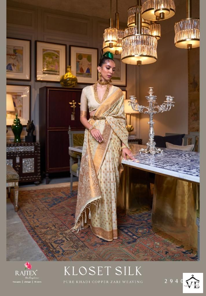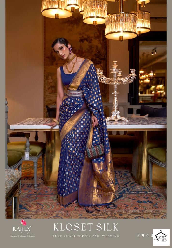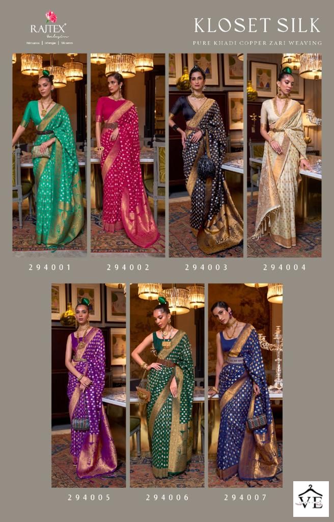 Raj Tex Kloset Silk Pure Khadi Wholesale Saree Catalog 7 Pcs. We deal in Kurtis, Sarees, Dresses Materials, Leggings, and Designer Salwar Kameez.