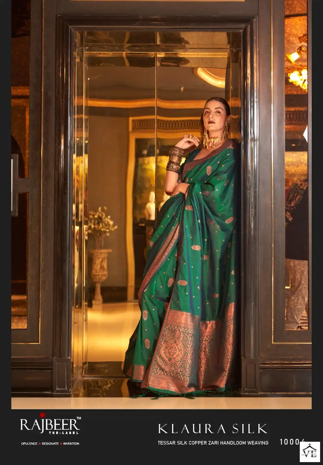 - Saree Fabric: Banarasi silk blend, designer saree