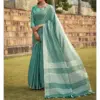 - Saree: Our Soft Linen Silk Saree is crafted from premium-quality fabric known for its softness, sheen, and luxurious feel. The saree is available in a range of vibrant and sophisticated colors, allowing you to choose the one that best complements your style. The softness and draping quality of the fabric make it an ideal choice for various occasions, from weddings to formal gatherings.