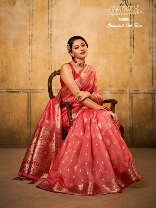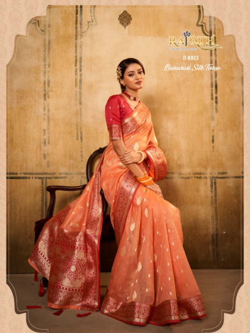 RajPath Fabrics Petals Banarasi Tissue Saree Collection – Wholesale Price