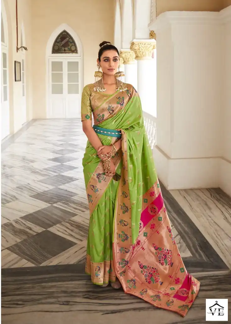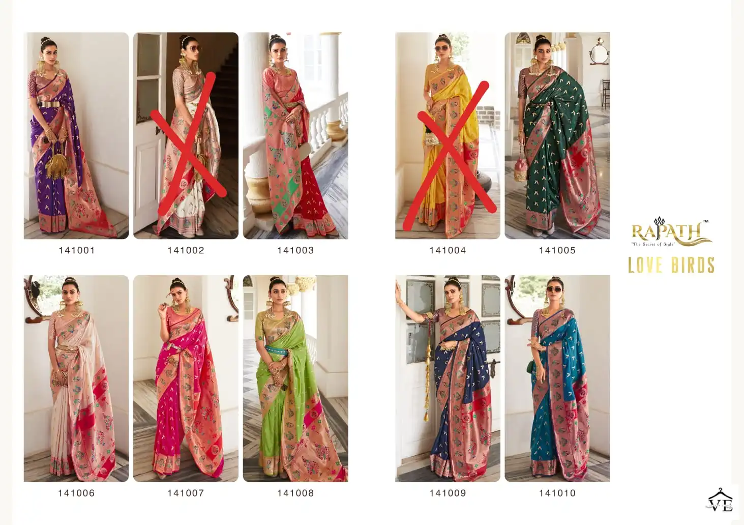 Rajpath Love Birds Soft Paithani Silk Wholesale Saree Catalog of 8 Pcs. We deal in Kurtis, Sarees, Dresses Materials, Leggings, and Designer Salwar Kameez.