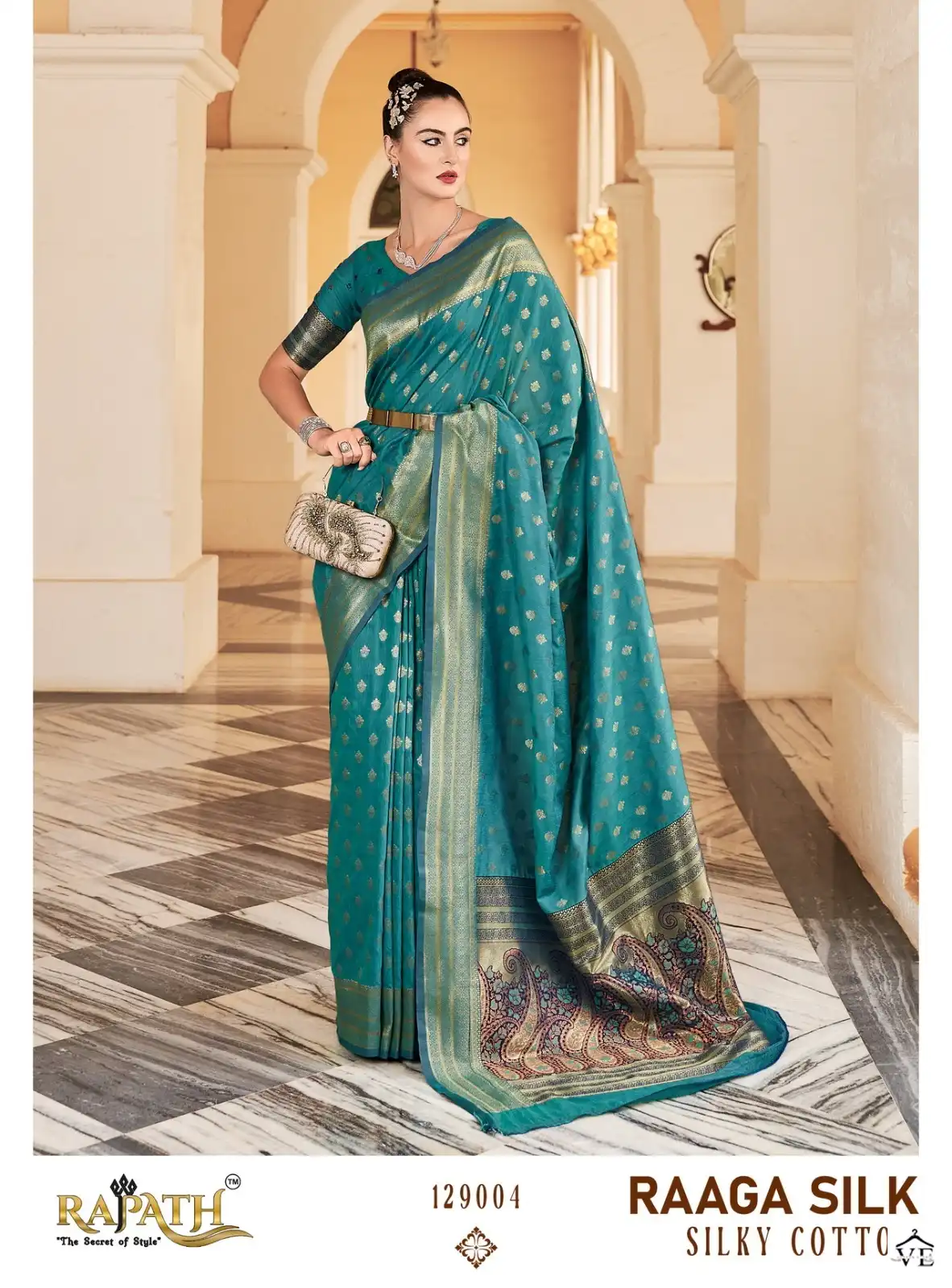 Rajpath Raaga Silk Banarasi Cotton Modal Silk Wholesale Saree Catalog of 6 Pcs. We deal in Kurtis, Sarees, Dresses Materials, Leggings, and Designer Salwar Kameez.