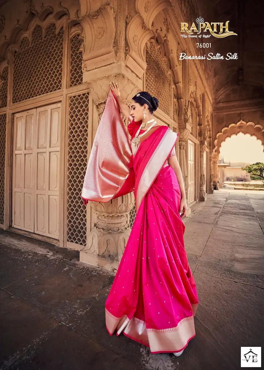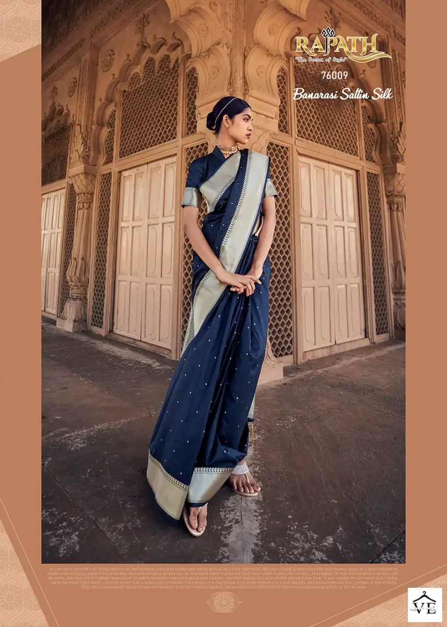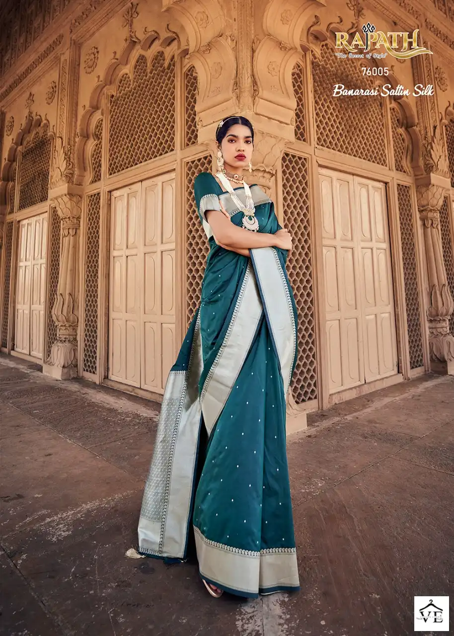 Rajpath Rubab Sattin Pure Banarasi Sattin Silk Wholesale Saree Catalog of 10 Pcs. We deal in Kurtis, Sarees, Dresses Materials, Leggings, and Designer Salwar Kameez.