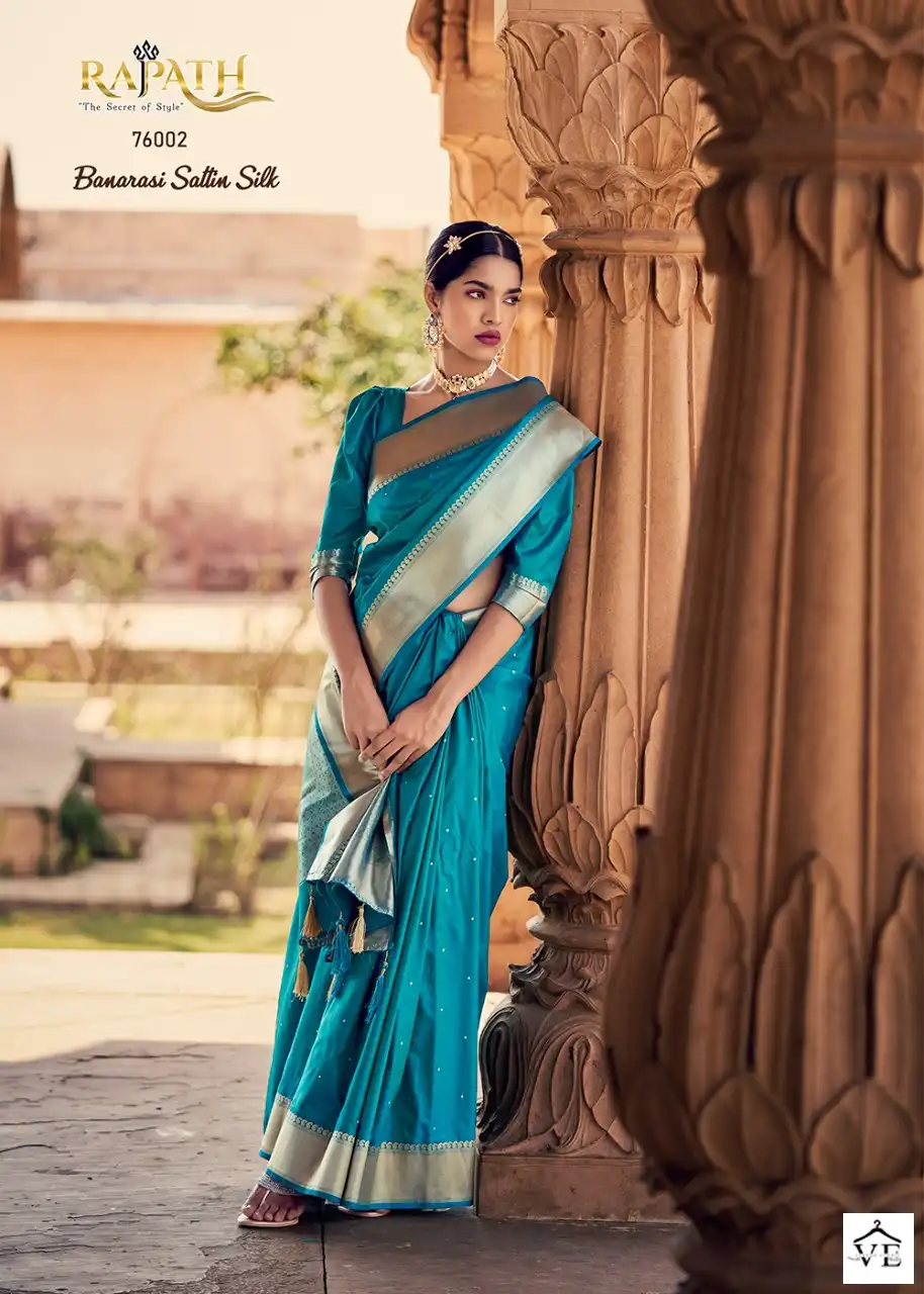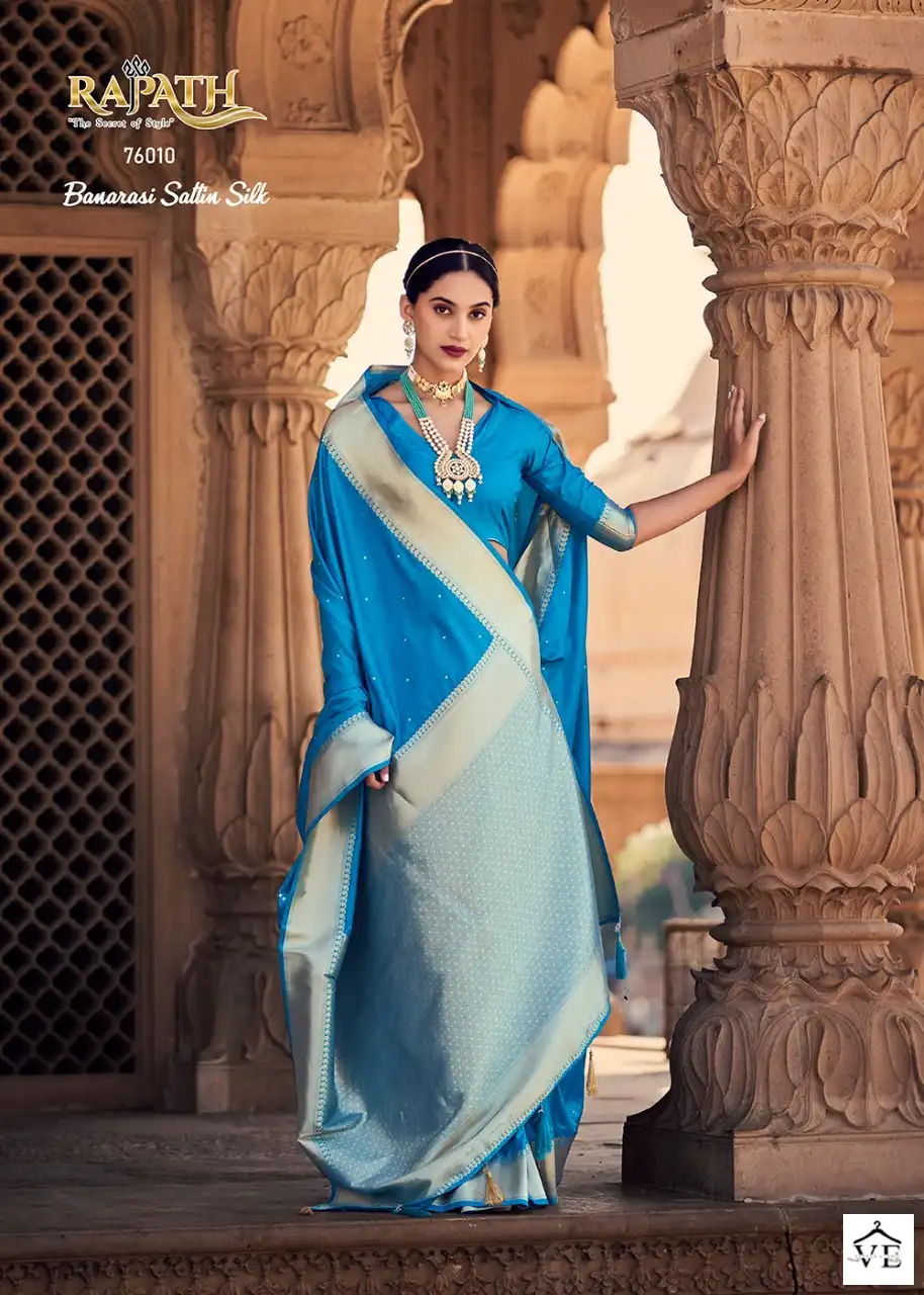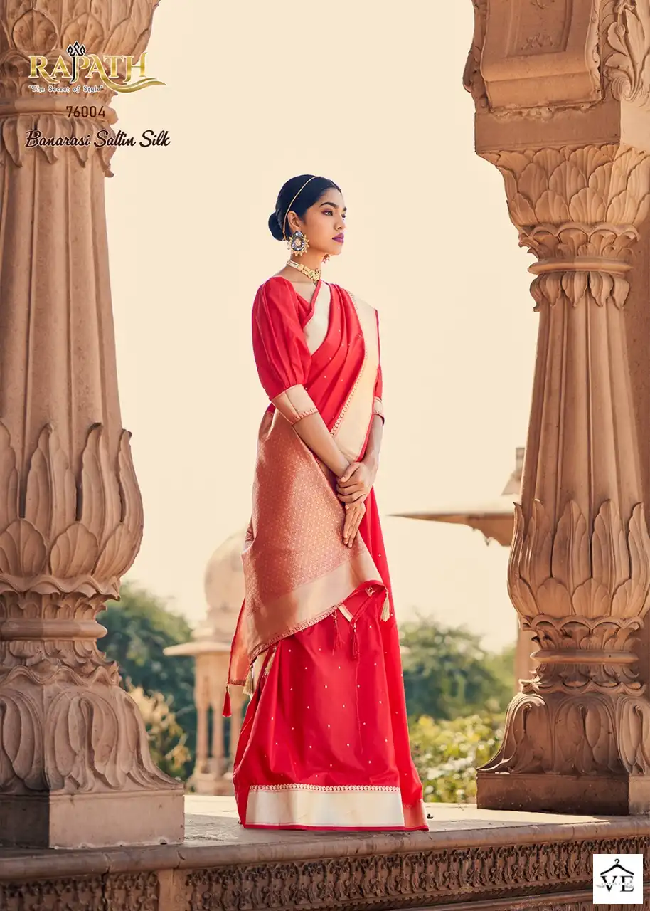 Rajpath Rubab Sattin Pure Banarasi Sattin Silk Wholesale Saree Catalog of 10 Pcs. We deal in Kurtis, Sarees, Dresses Materials, Leggings, and Designer Salwar Kameez.