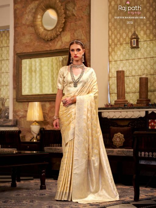 Buy Rajpath Shella Gold soft satin silk sarees online at the best wholesale price.