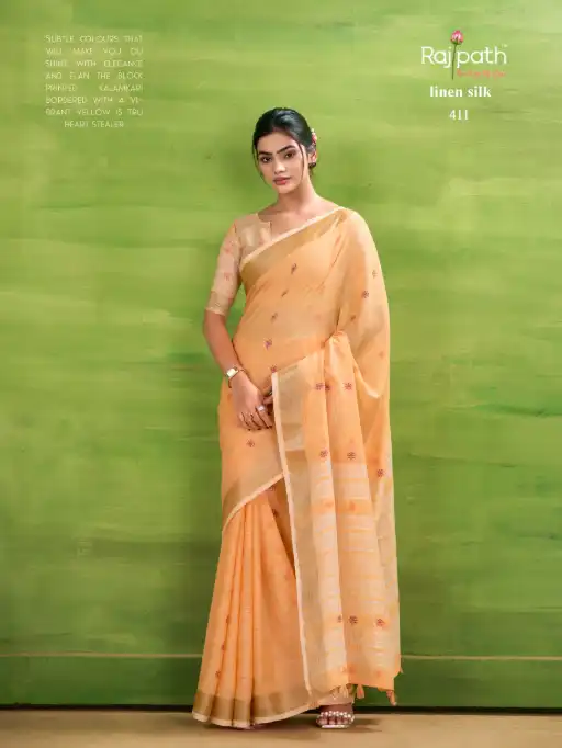 Buy RajPath Sunrise Silk linen sarees at best wholesale rates.