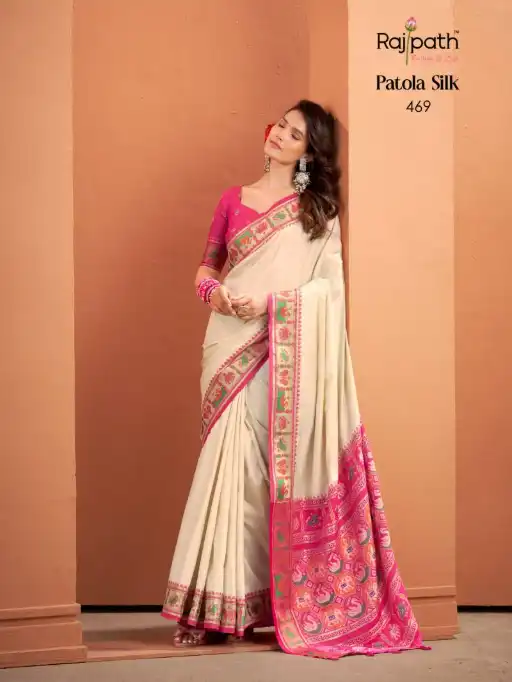Buy Rajpath Vrundavan Silk catalog featuring traditional Patola silk sarees at unbeatable wholesale rates.