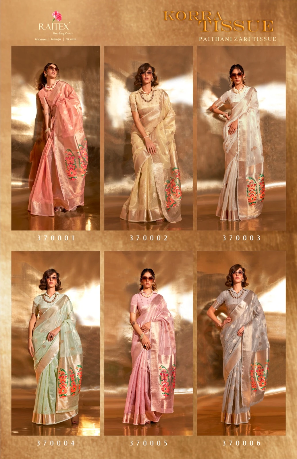 Rajtex 370000 Series Zari Tissue Wholesale Fancy Sarees Catalog