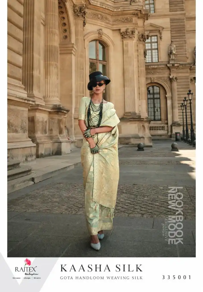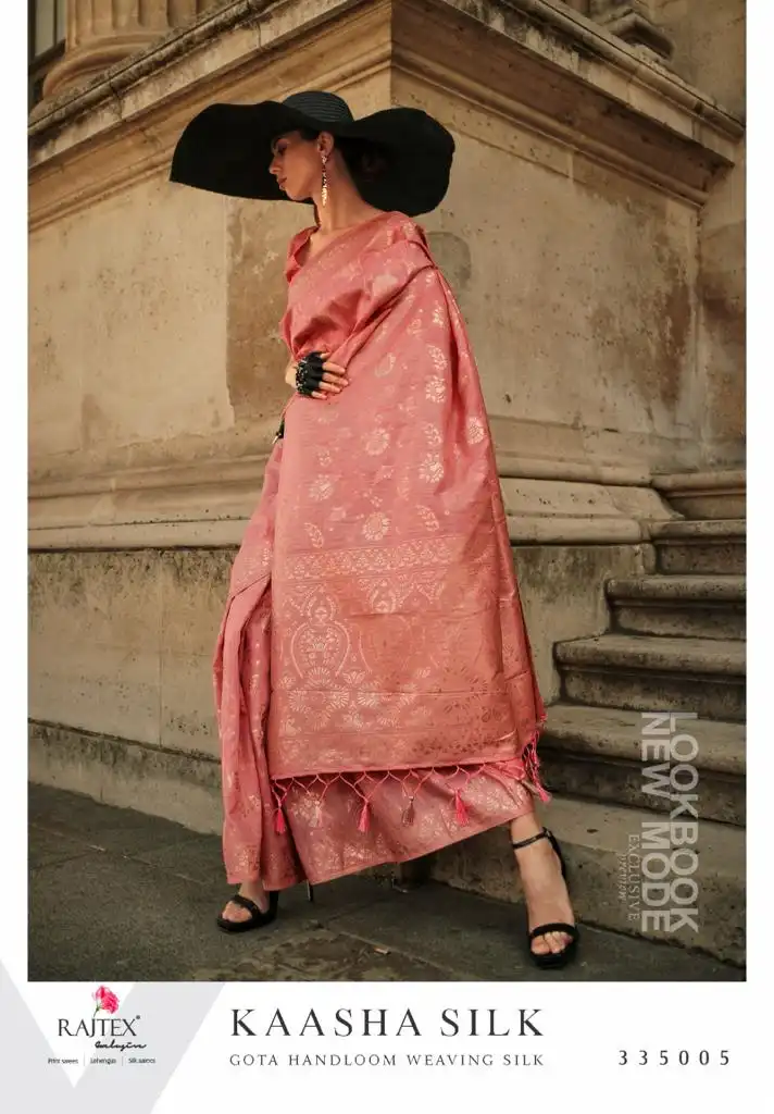Rajtex Kaasha Silk Handloom Weaving Silk Wholesale Saree Catalog of 6 Pcs. We deal in Kurtis, Sarees, Dresses Materials, Leggings, and Designer Salwar Kameez.