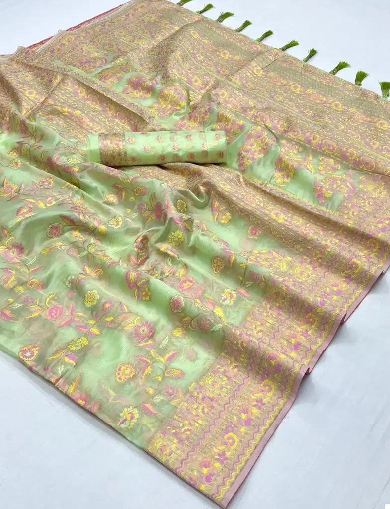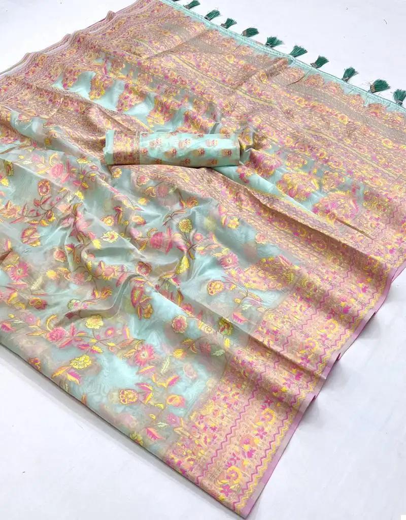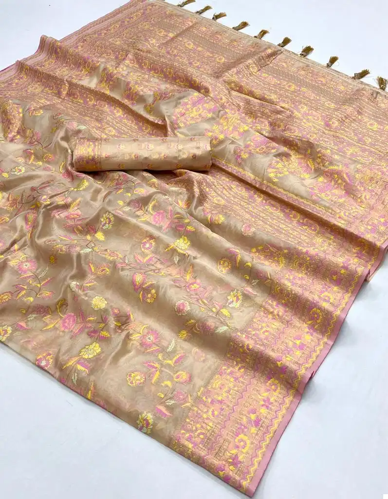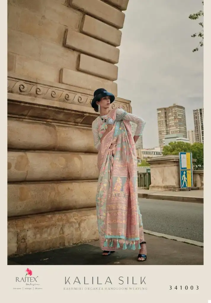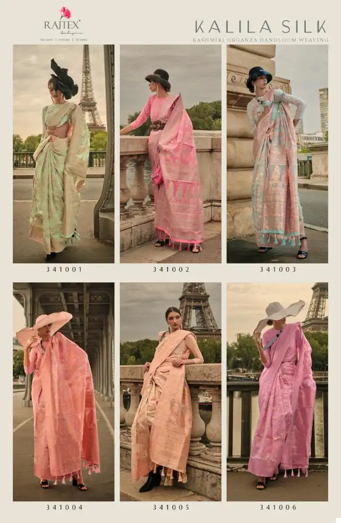 Rajtex Kalila Silk Kashmiri Organza Wholesale Saree Catalog of 6 Pcs. We deal in Kurtis, Sarees, Dresses Materials, Leggings, and Designer Salwar Kameez.