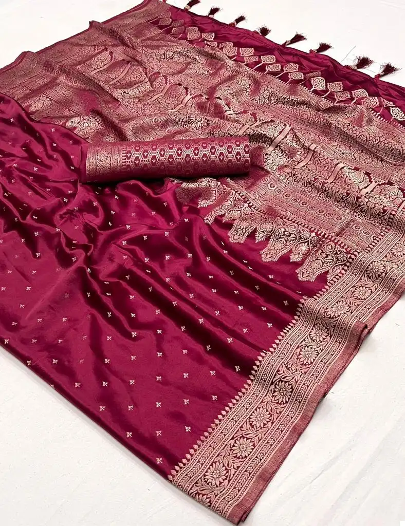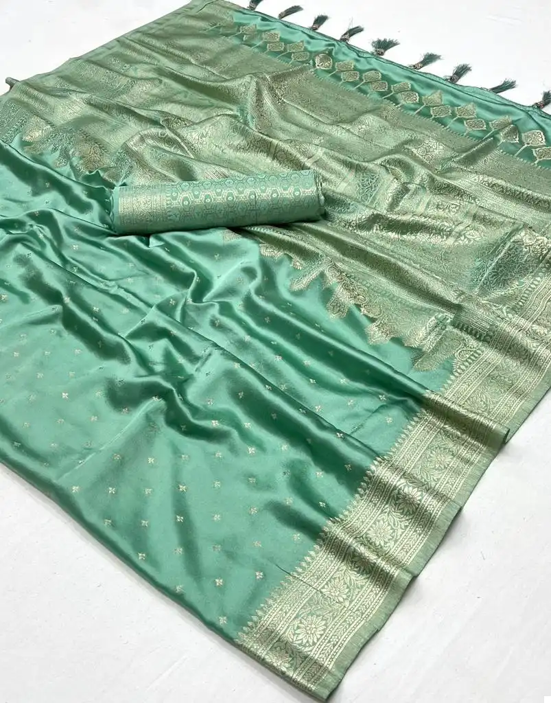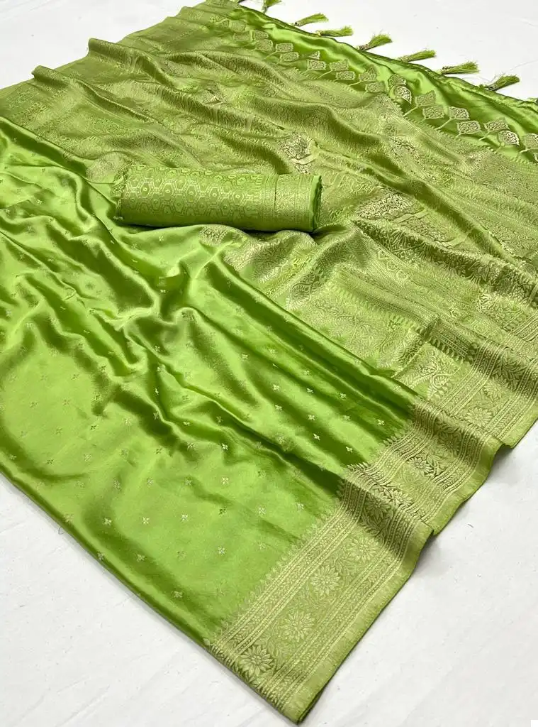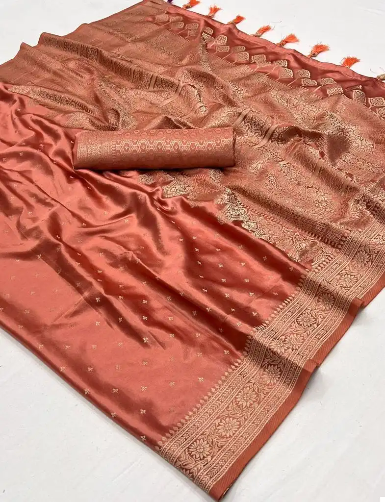Step into the spotlight and make a statement with this Elegant Pure Satin Nylon Handloom Weaving Silk Saree. Its exquisite craftsmanship and timeless appeal will leave a lasting impression.