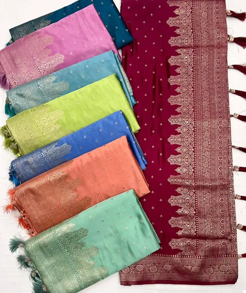 The saree comes with pure tassels that add an extra element of elegance to your ensemble. They provide a touch of tradition and sophistication.