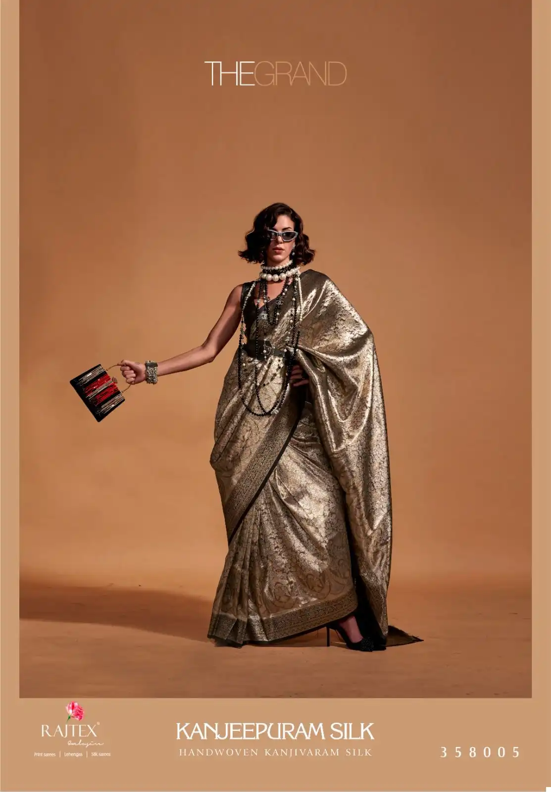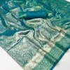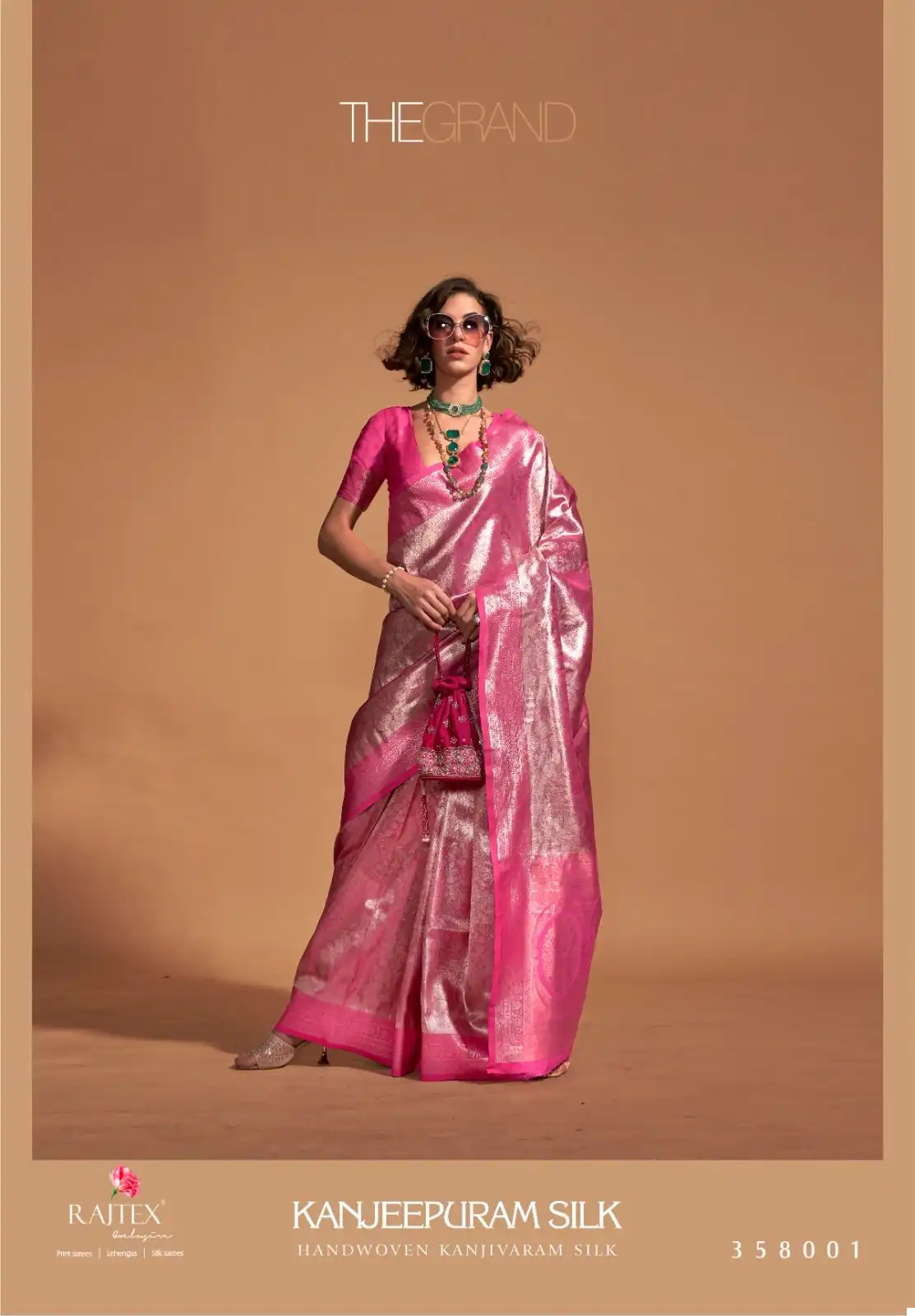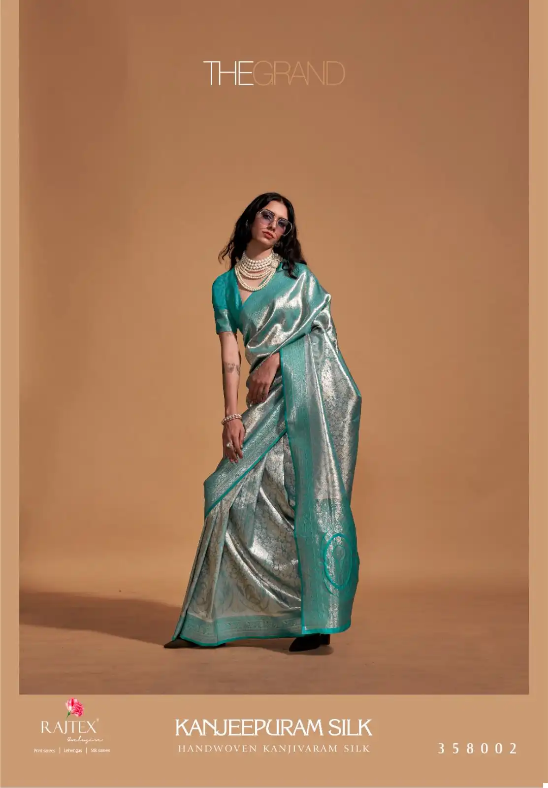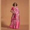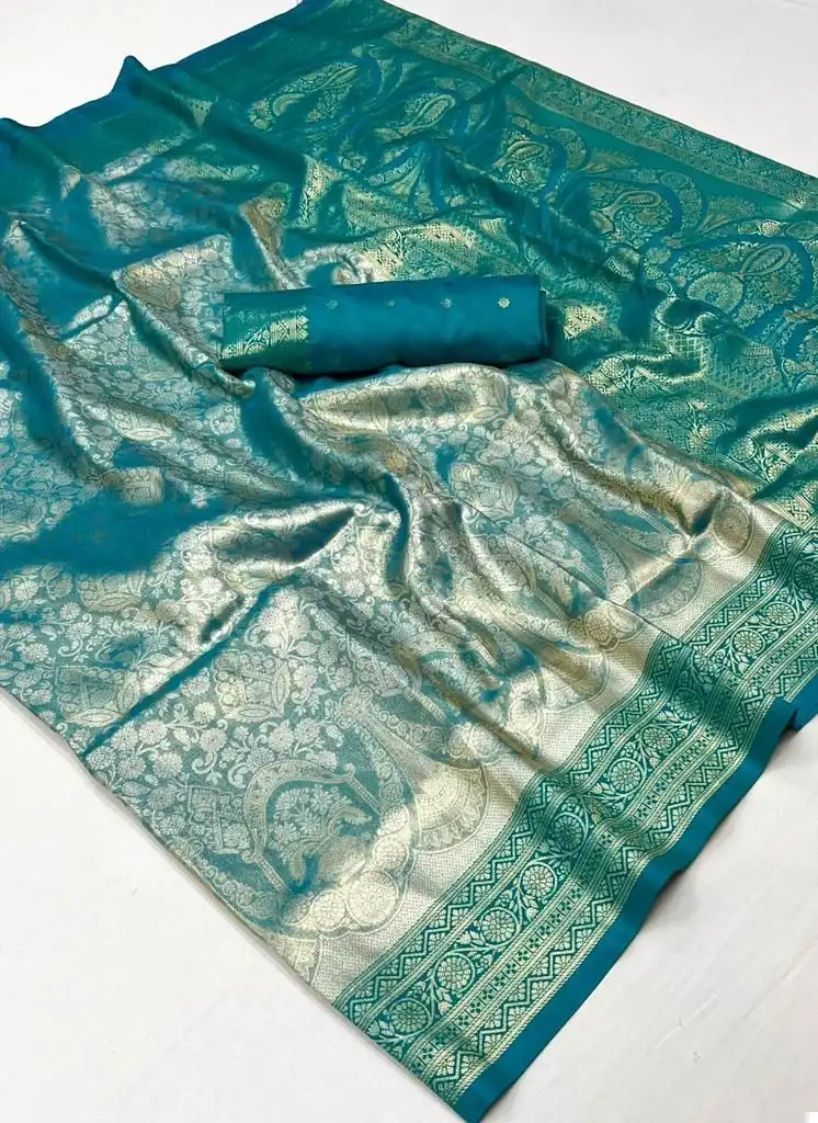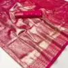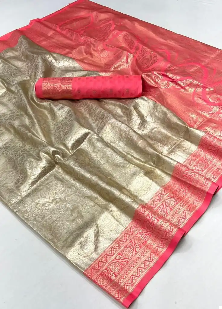 - Saree Material: Kancheepuram Silk, which is handwoven, and includes Kanjivaram Silk with contrast Pallu border weaving.