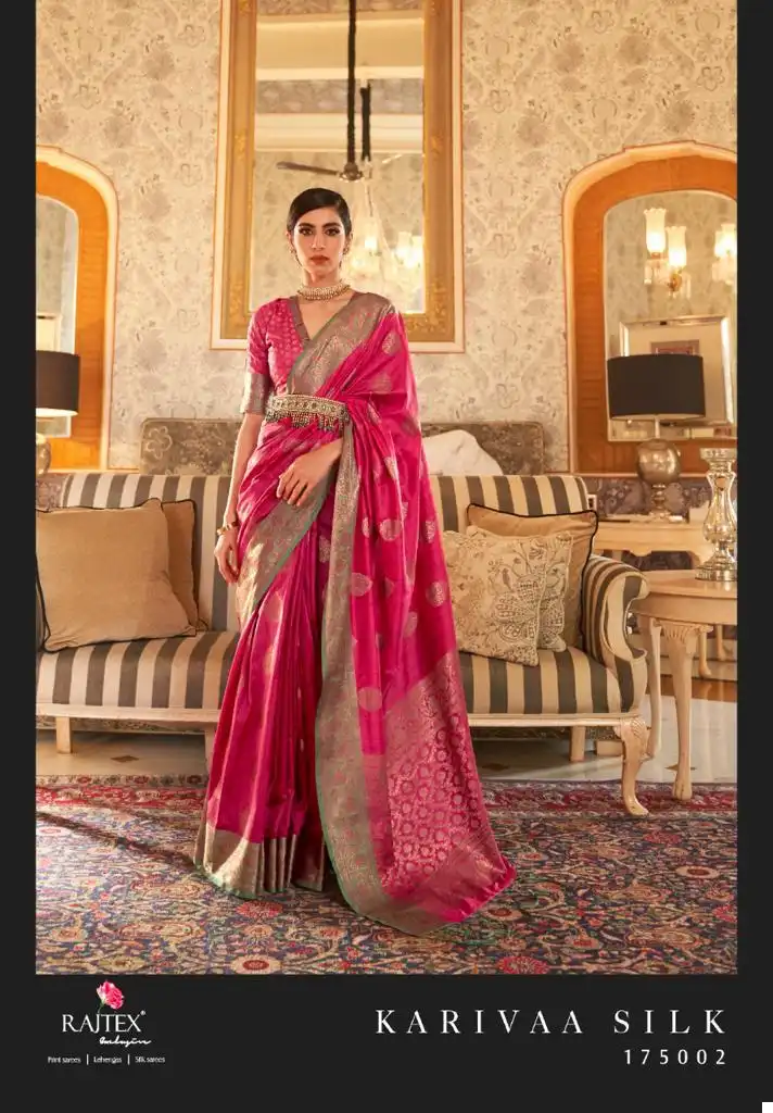 Introducing the Rajtex Karivaa Silk Handloom Weaving Silk Wholesale Saree Catalog — where timeless tradition meets contemporary elegance. Immerse yourself in the artistry of handloom weaving silk with each exquisite saree, meticulously crafted to redefine grace and sophistication. Elevate your ethnic wardrobe with this collection, a celebration of heritage and modern style.