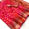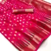 Blouse: Paired with a brocade blouse, this saree set is a perfect blend of classic and contemporary styles. The intricate brocade work adds a regal touch to your look, enhancing the overall elegance of the ensemble. The blouse complements the saree beautifully, creating a cohesive and harmonious outfit.