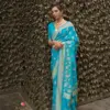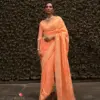 - Silk Nylon Chinon Fabric: Immerse yourself in the luxurious texture of Silk Nylon Chinon, a fabric known for its smooth finish, subtle sheen, and lightweight drape. The use of this premium fabric in the Kosmos collection ensures a regal touch, making these sarees ideal for special occasions and celebrations.