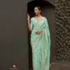 - Color Palette: The color palette is thoughtfully curated to include a spectrum of hues, from rich and vibrant tones to subtle pastels. The variety of colors ensures that there’s a saree to suit different occasions and preferences, allowing wearers to express their individual style.