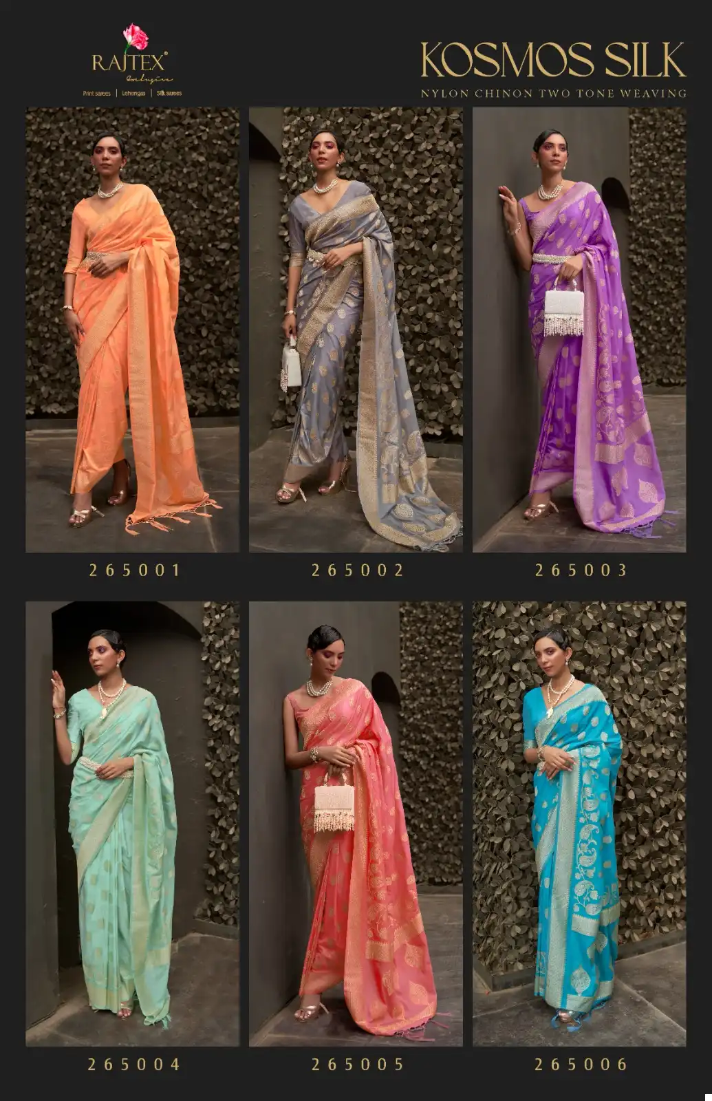 Rajtex Kosmos Silk Nylon Chinon Wholesale Sarees Catalog