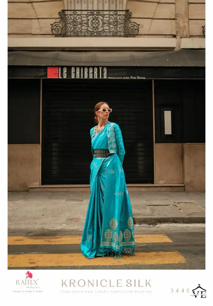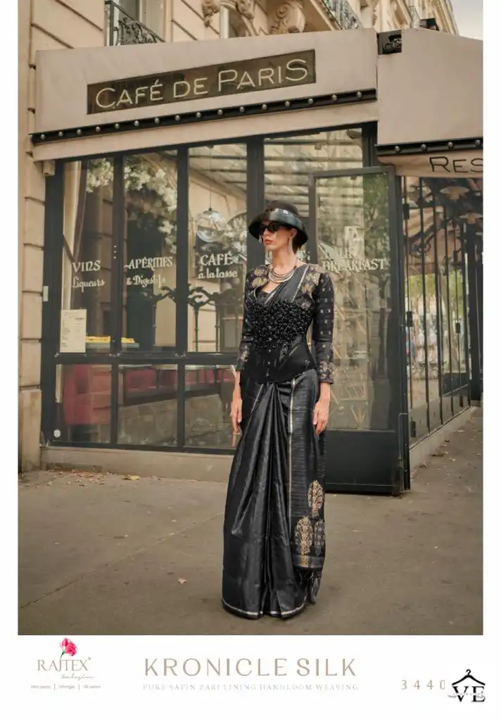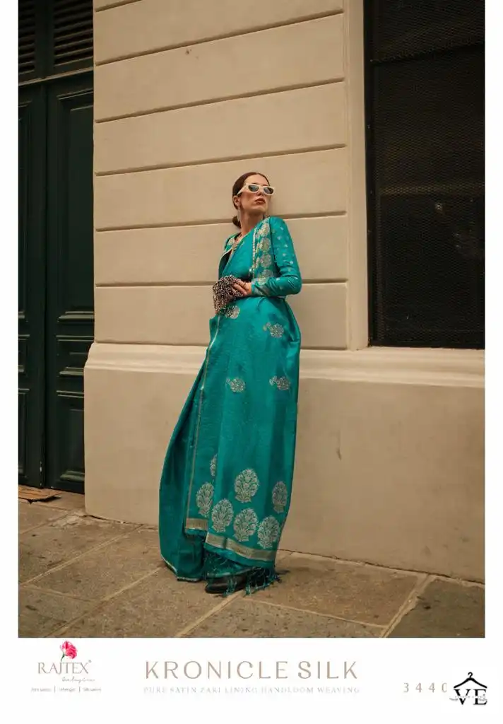 Rajtex Kronicle Silk Satin Wholesale Saree Catalog of 7 Pcs. We deal in Kurtis, Sarees, Dresses Materials, Leggings, and Designer Salwar Kameez.