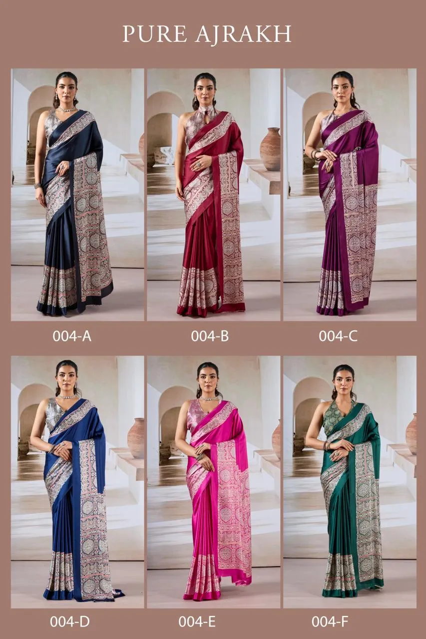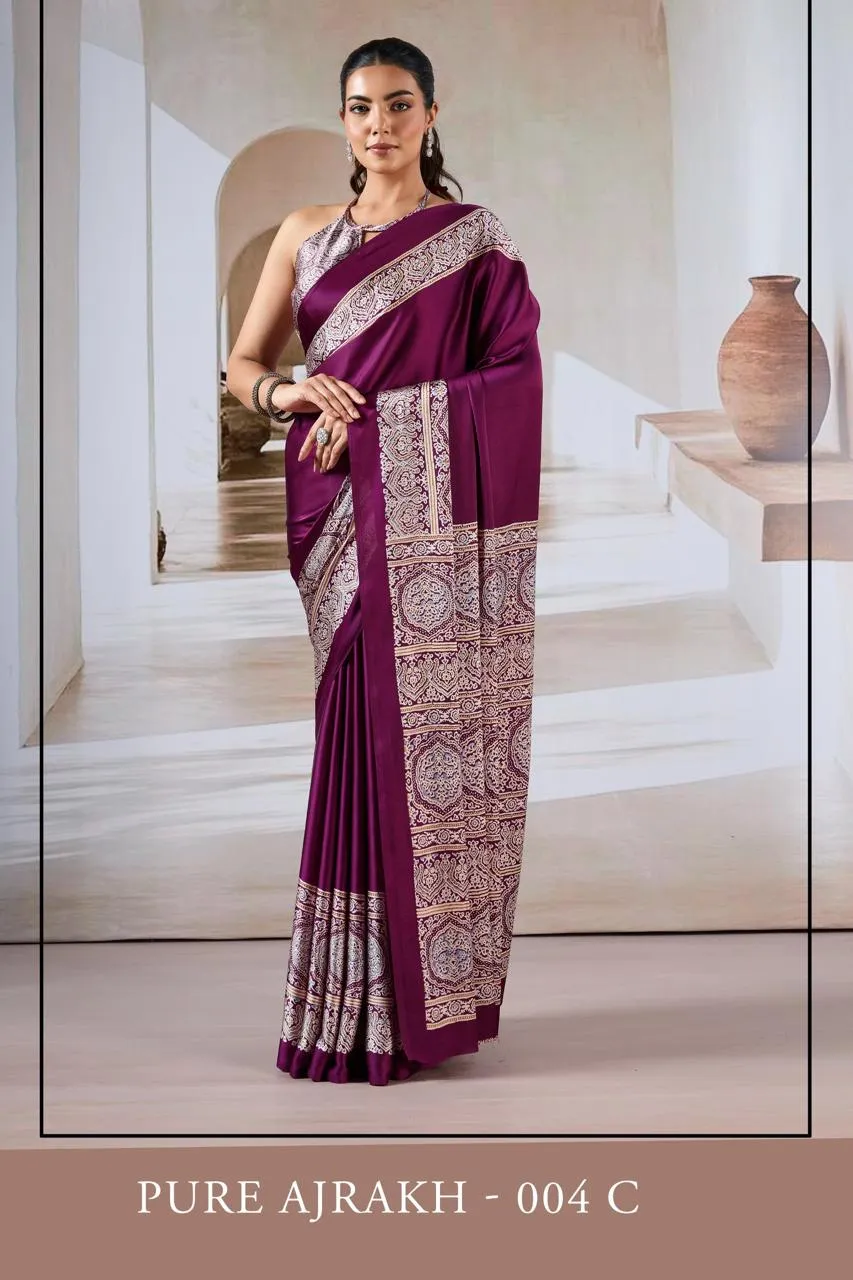 Rajtex Pure Ajrakh 004 Modal Satin Ajrakh Print Saree Collection