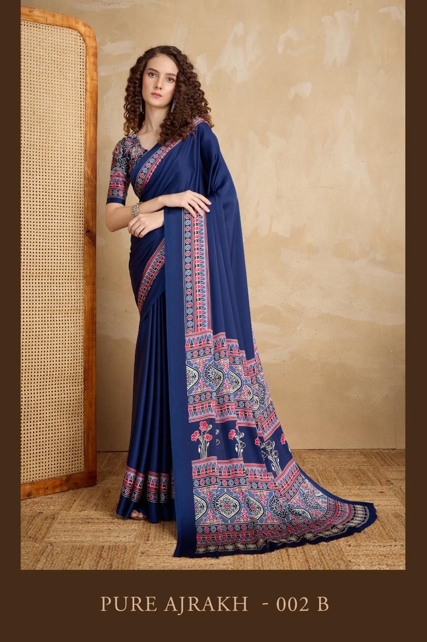 Rajtex Pure Ajrakh 02 Wholesale Satin Printed Saree Collection.