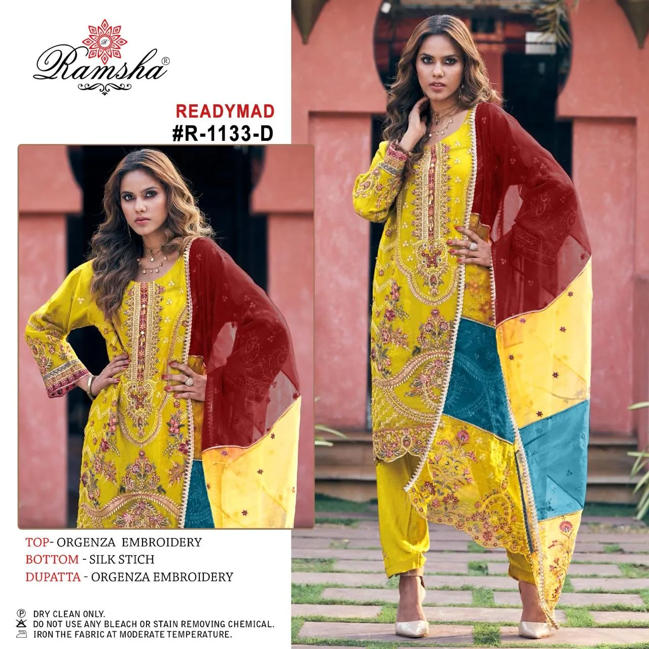 Ramsha R 1133 Organza Wholesale Pakistani Salwar Suit Collection