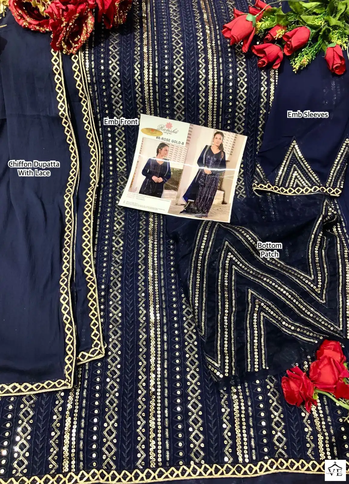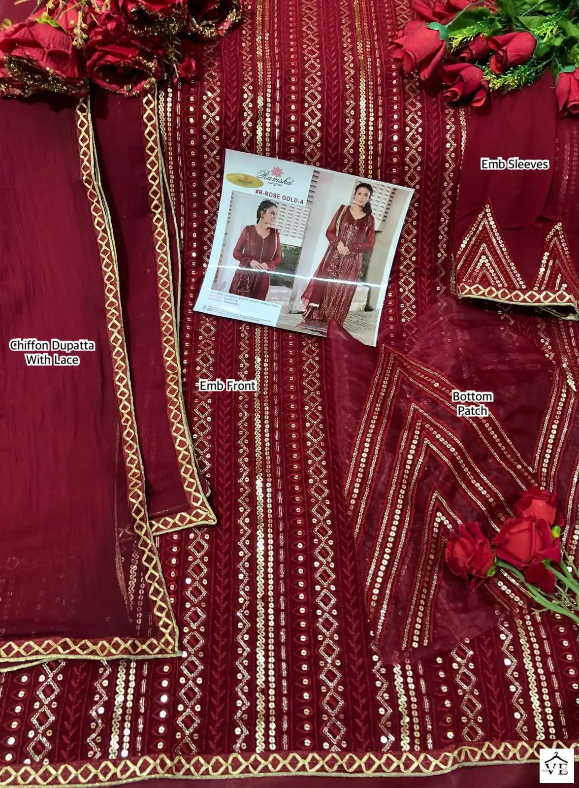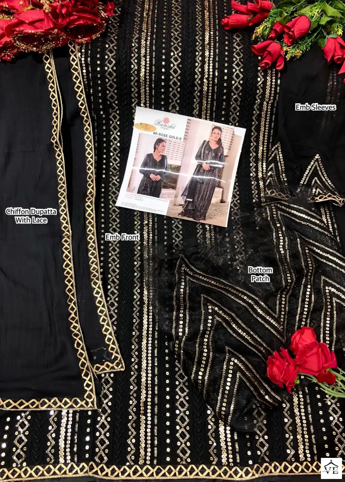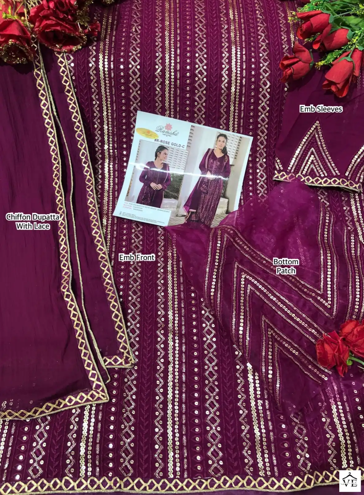 Ramsha Rose Gold Colours Faux Georgette Wholesale Pakistani Suit Catalog of 5 Pcs. We deal in Kurtis, Sarees, Dresses Materials, Leggings, and Designer Salwar Kameez.