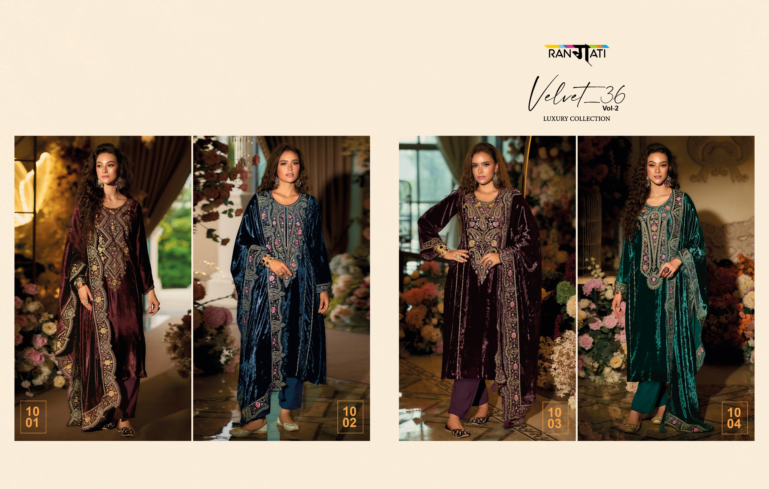 Rangati Prints Velvet 36 Vol 2 Viscose Plush Velvet Wholesale Winter Collection