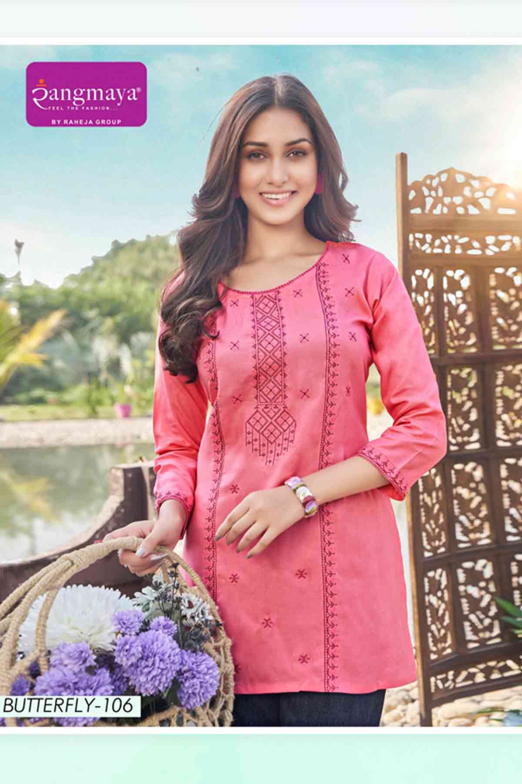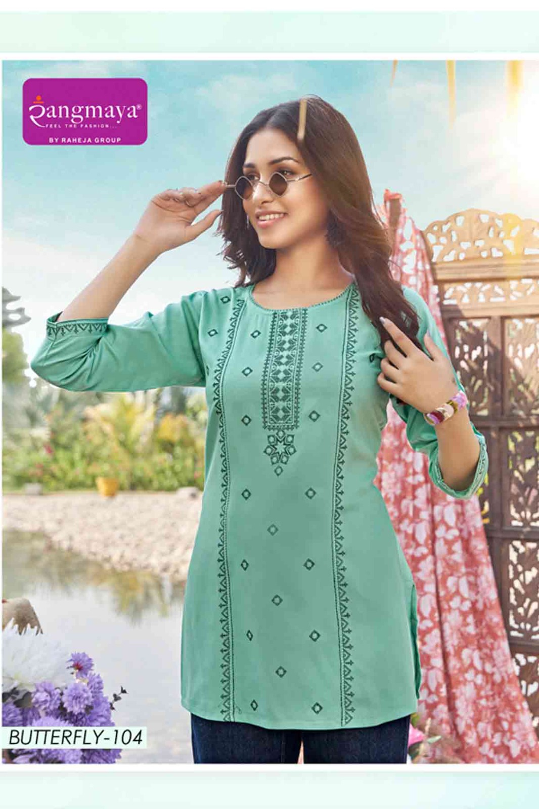 Rangmaya Butterfly Rayon Wholesale Tunic Short Top Catalog