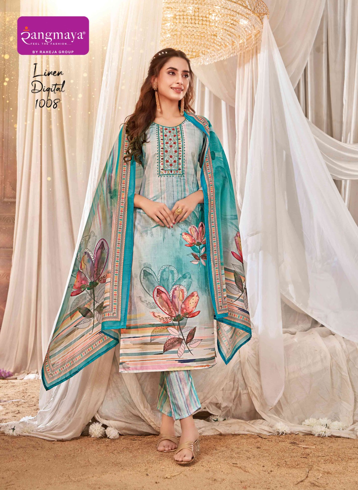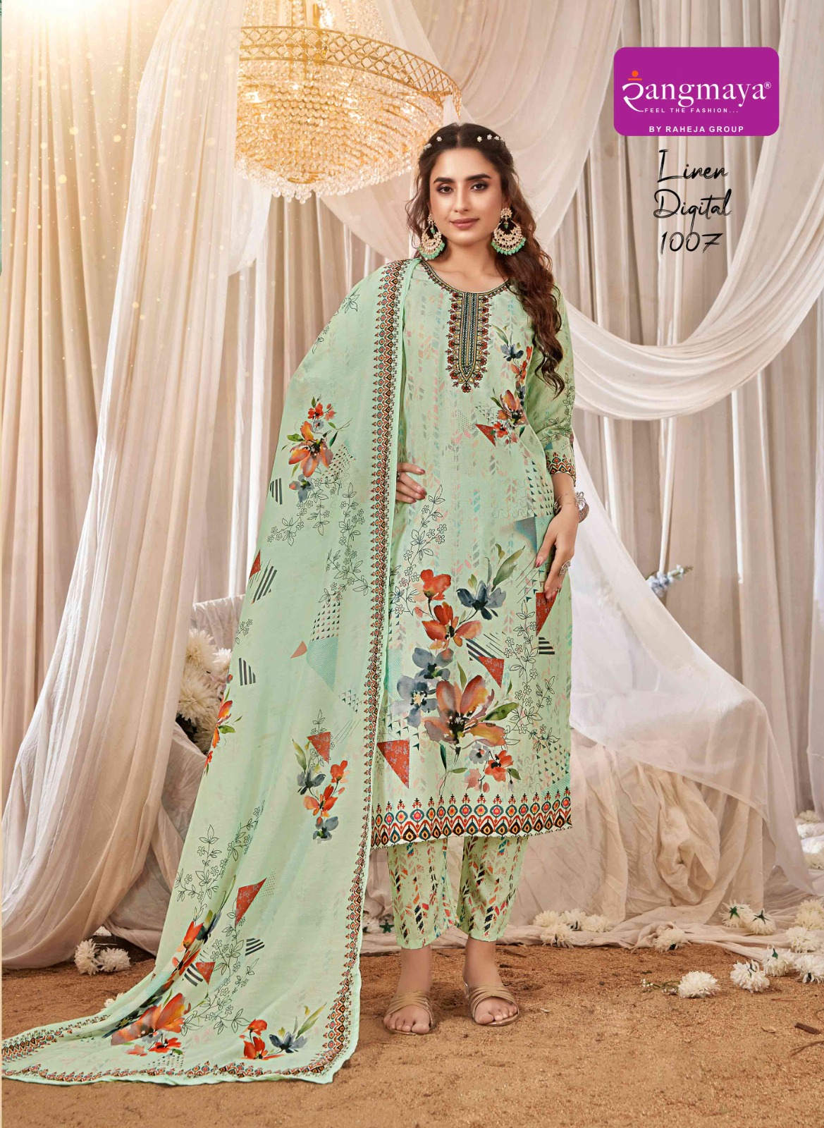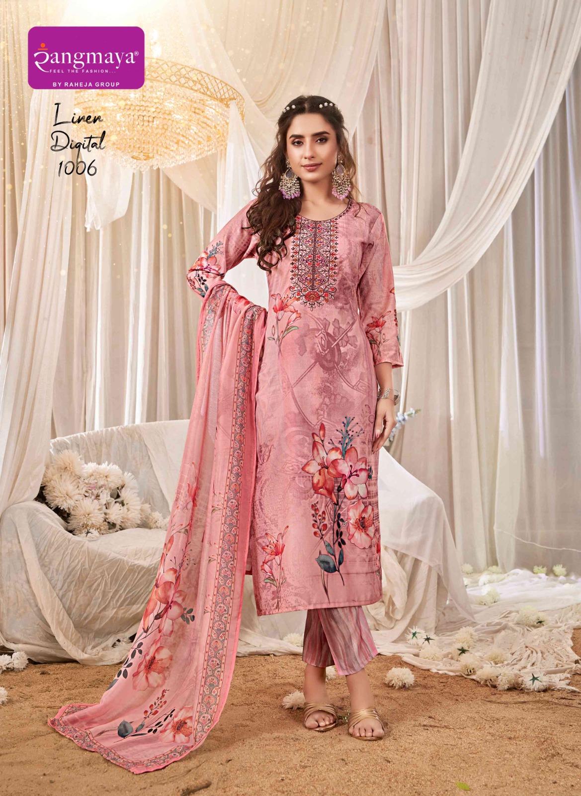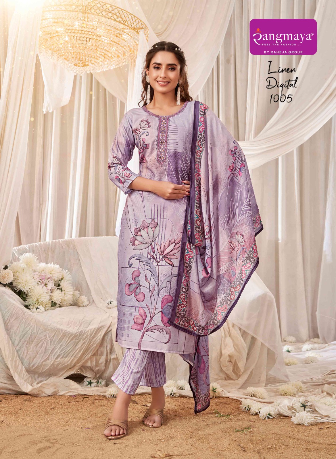 Rangmaya Linen Digital Cotton Kurti with Pant & Dupatta Wholesale Catalog.