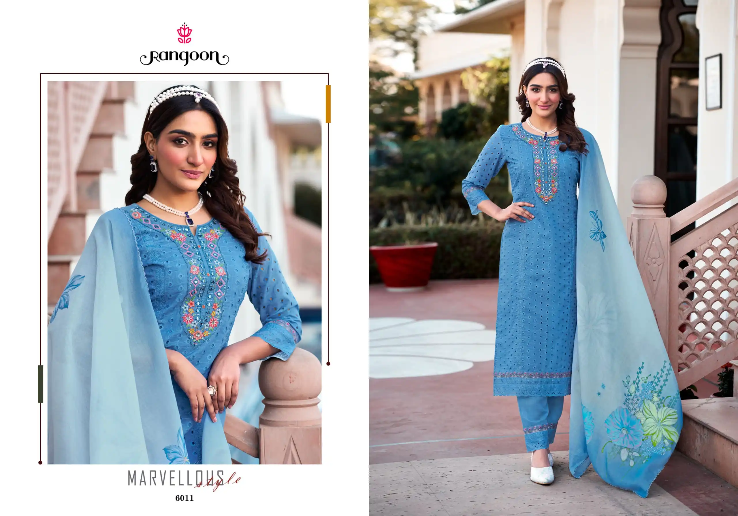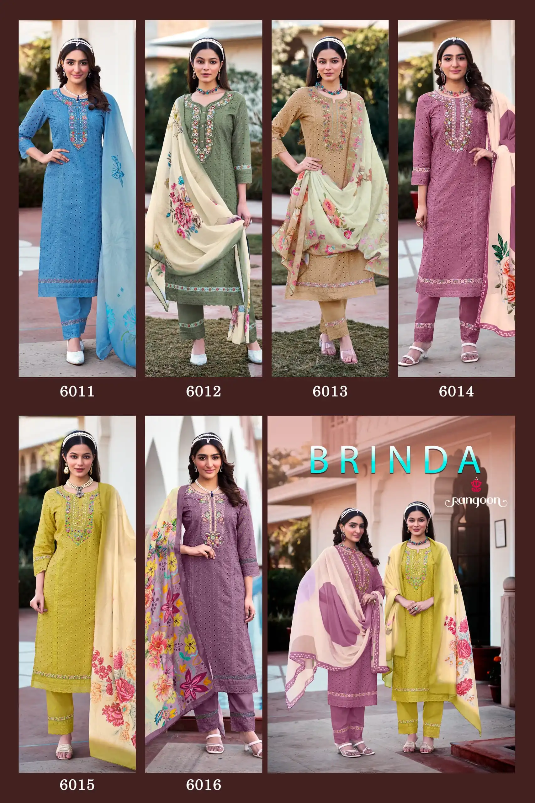 Rangoon Brinda Chiffli Cotton Embroidered Salwar Suits Catalog.