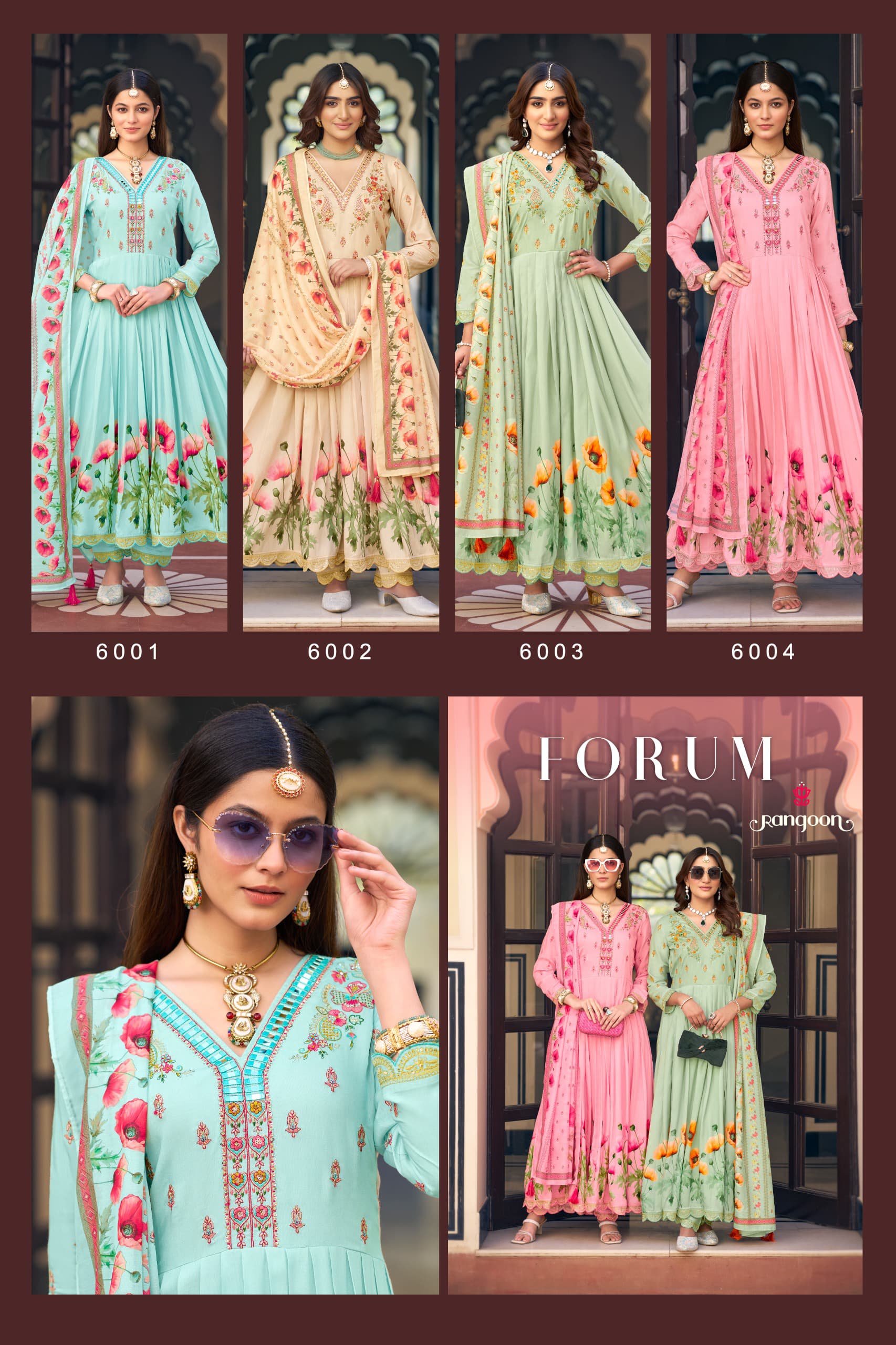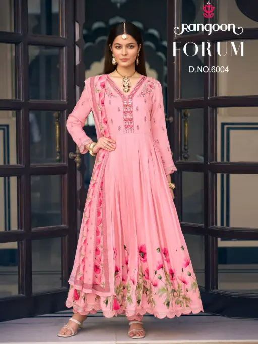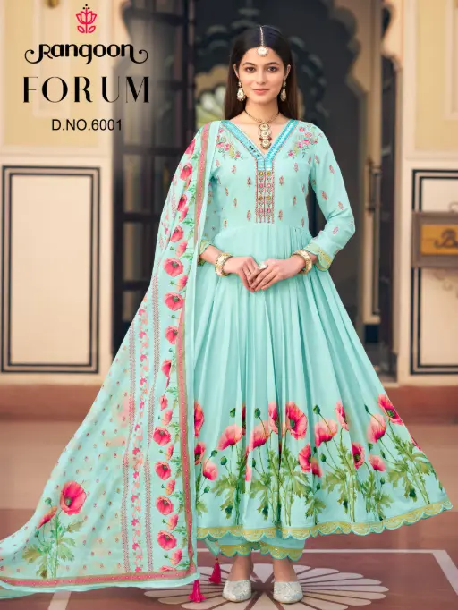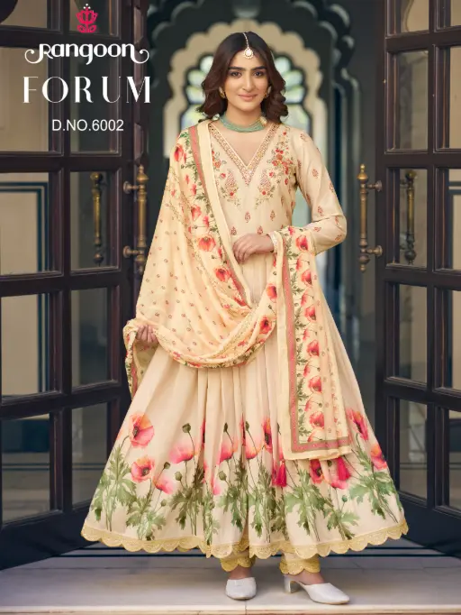 Rangoon Forum Muslin Print Amarkali Designer Suit Catalog.