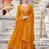 - Dupatta: Silk With Heavy Dupatta Work With Scaling Border – The scarf or dupatta accompanying the outfit is made of silk fabric with heavy dupatta work and a scaling border.