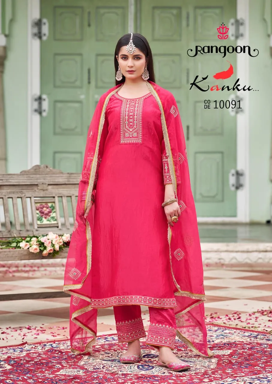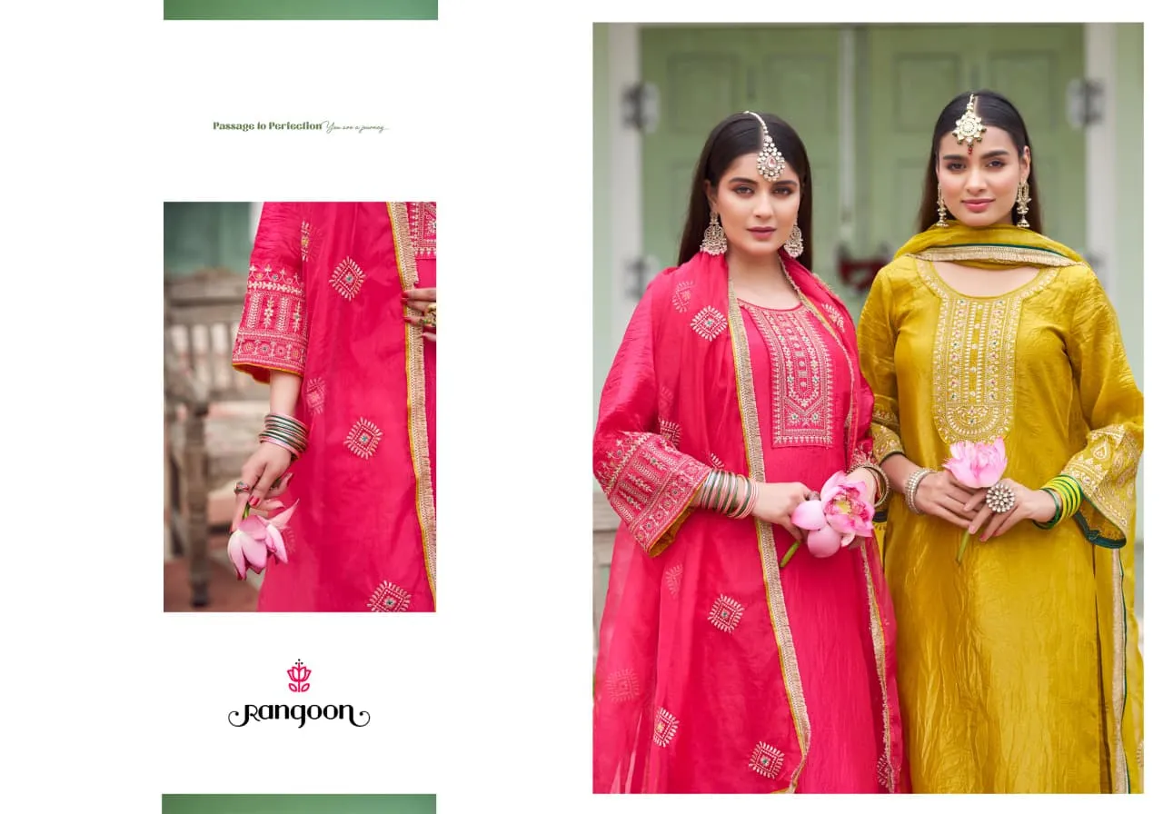 Rangoon Kanku Gold Crush With Fancy Work Readymade Suit