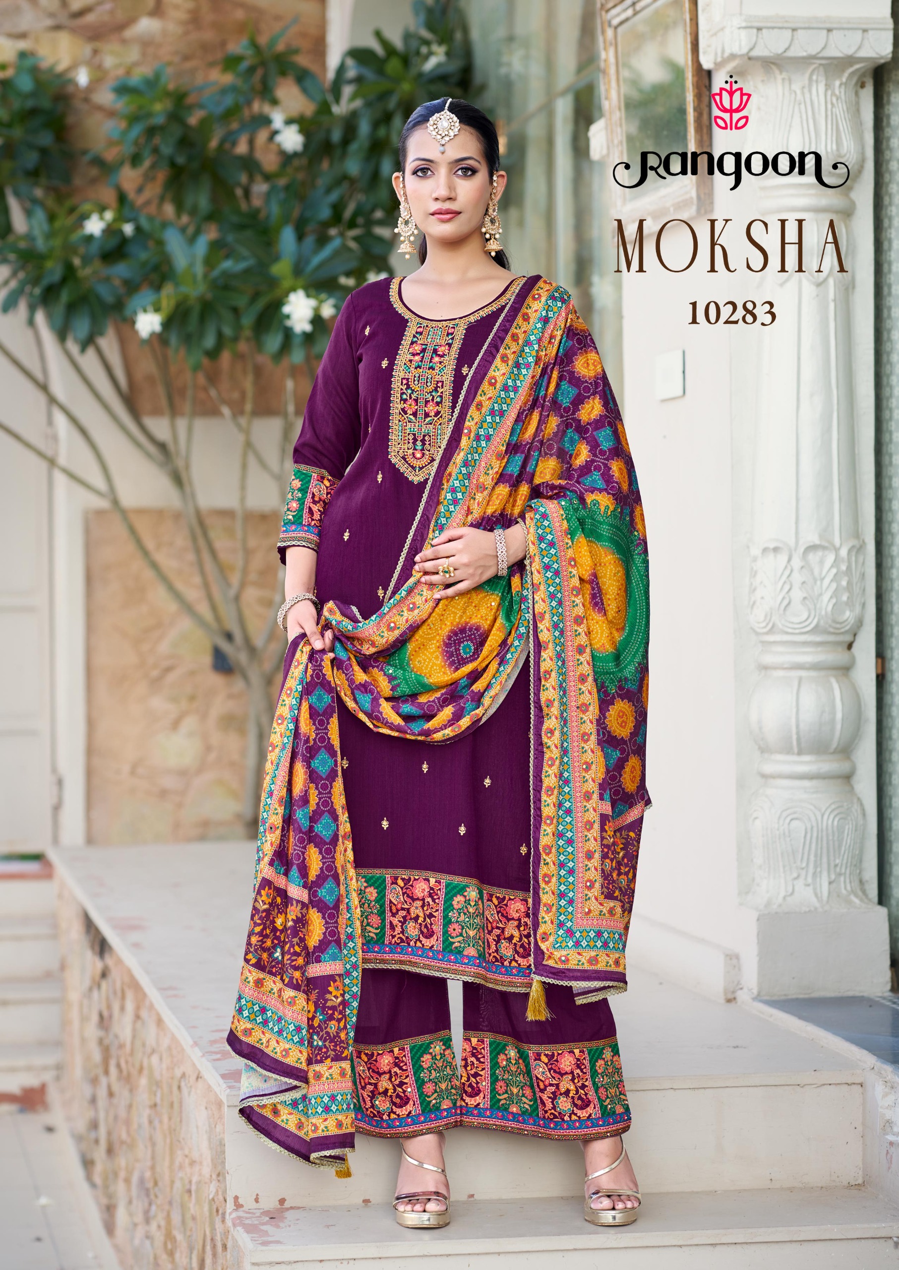 Rangoon Moksha Silk With Embroidery Work Top Bottom And Dupatta