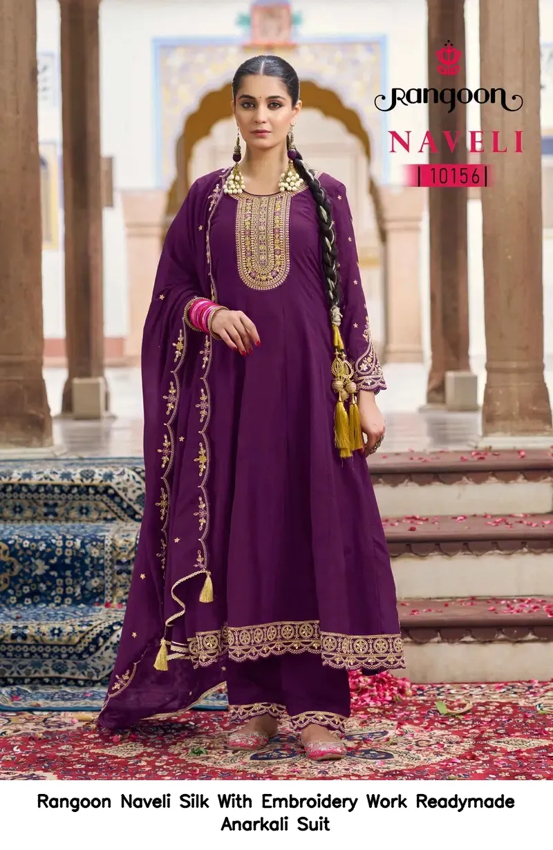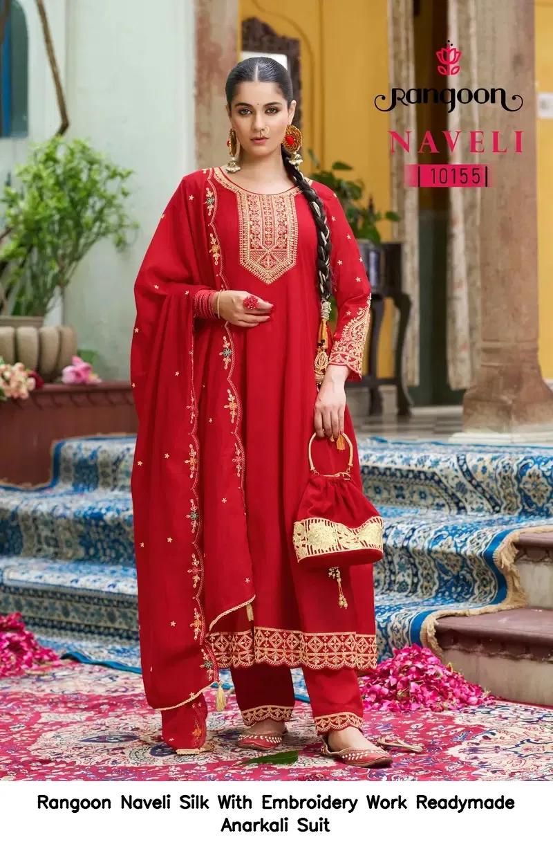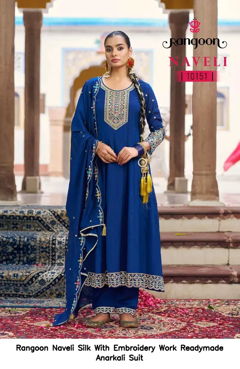 Rangoon Naveli Silk With Embroidery Work Readymade Anarkali Suit